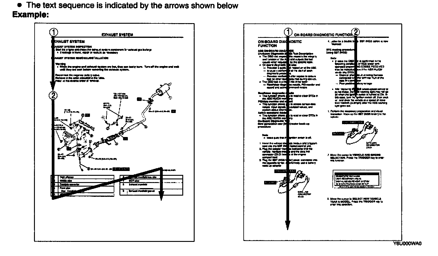 - The quick diagnosis chart lists diagnosis and inspection procedures to be performed specifically relating to the cause of the malfunction.