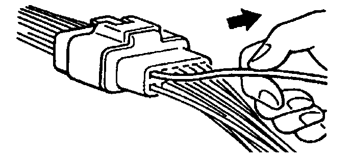 - Insert a thin piece of metal from the terminal side of the connector and with the terminal locking tab pressed down, pull the terminal out from the connector.