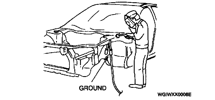 A vehicle has various electrical parts. To protect the parts from excessive current generated when welding, be sure to perform the following procedure.