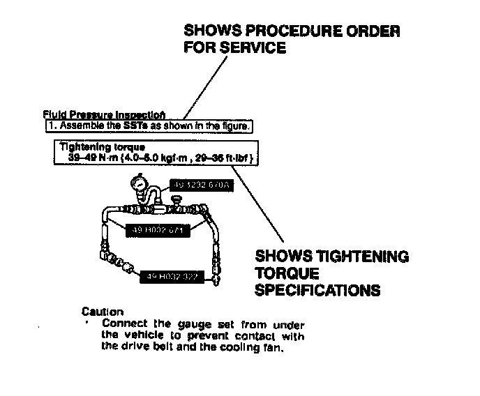 - Inspection and adjustment procedures are divided into steps. Important points regarding the location and contents of the procedures are explained in detail and shown in the illustrations.