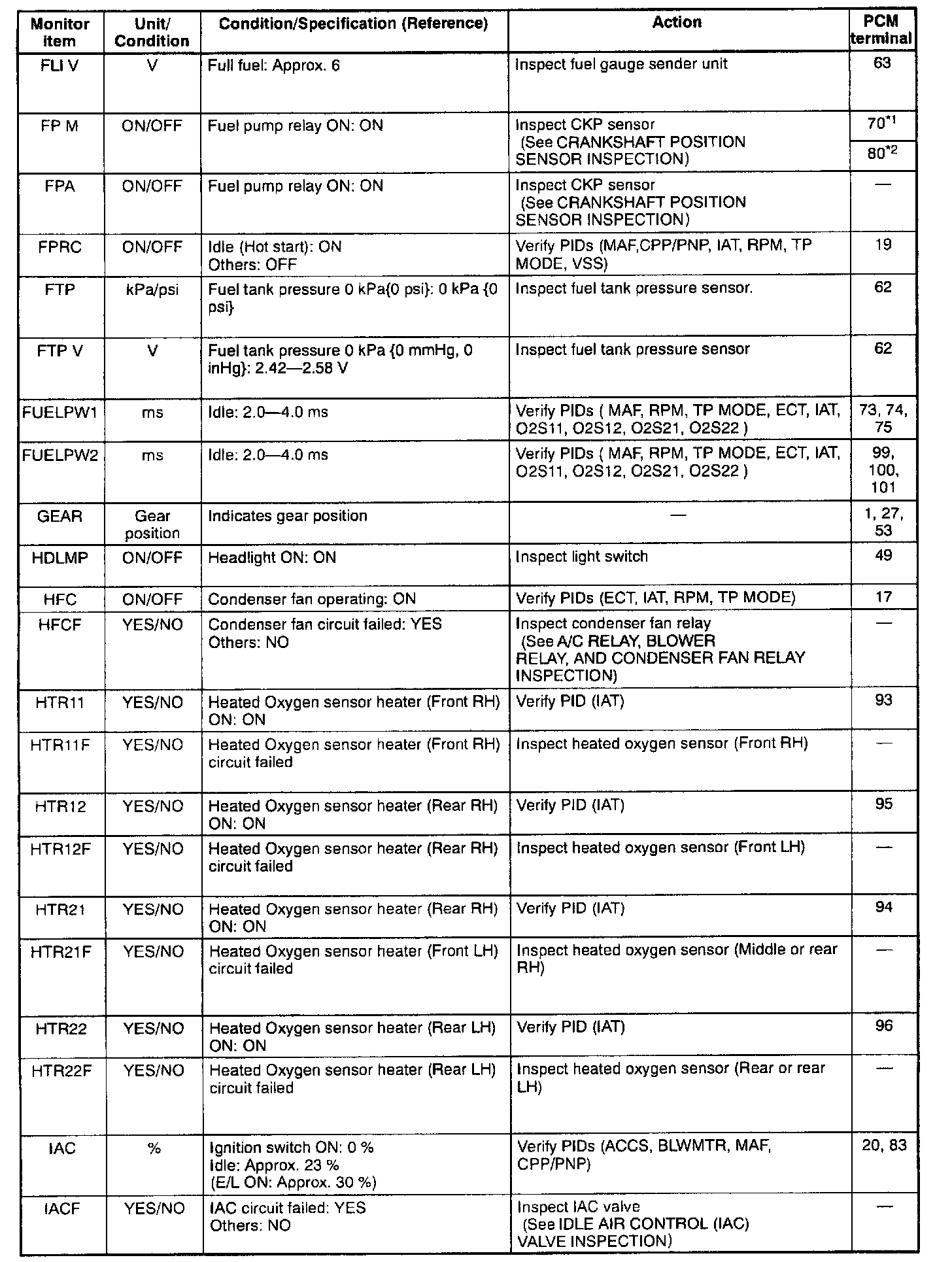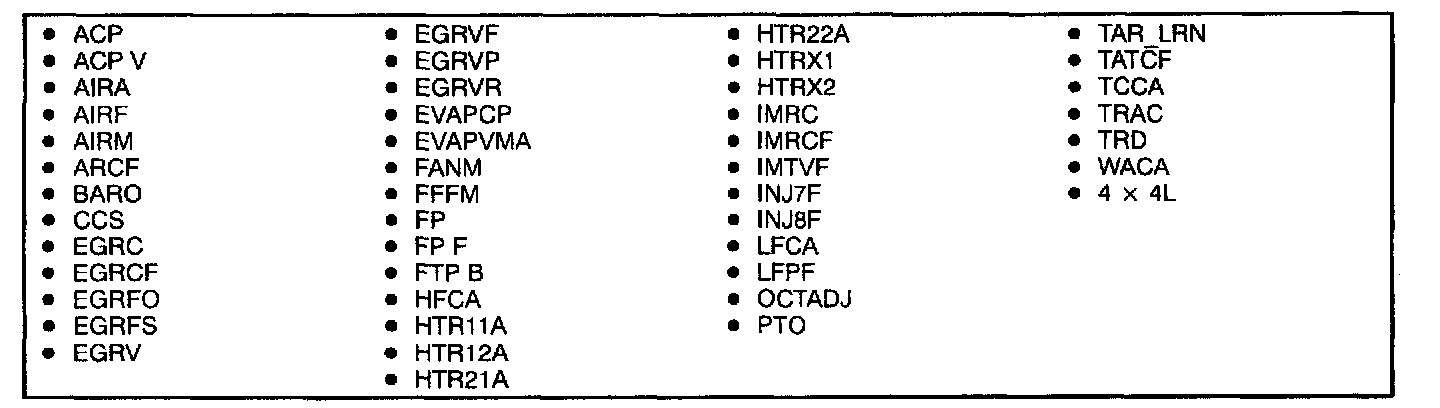 - PIDs for the following pats are not available on this model. Go to the appropriate part inspection.