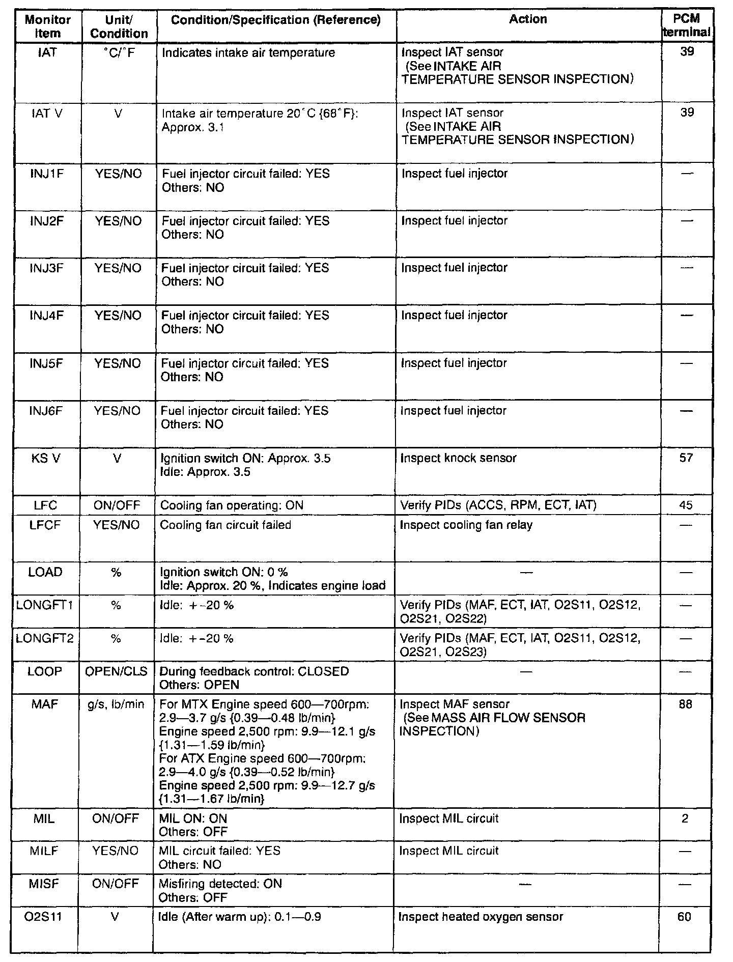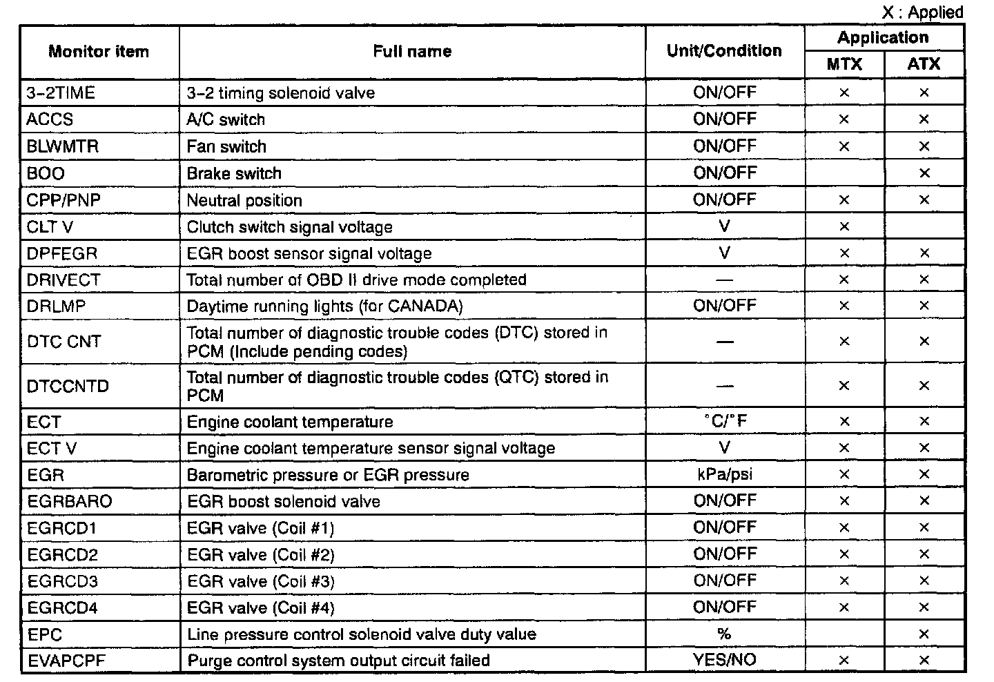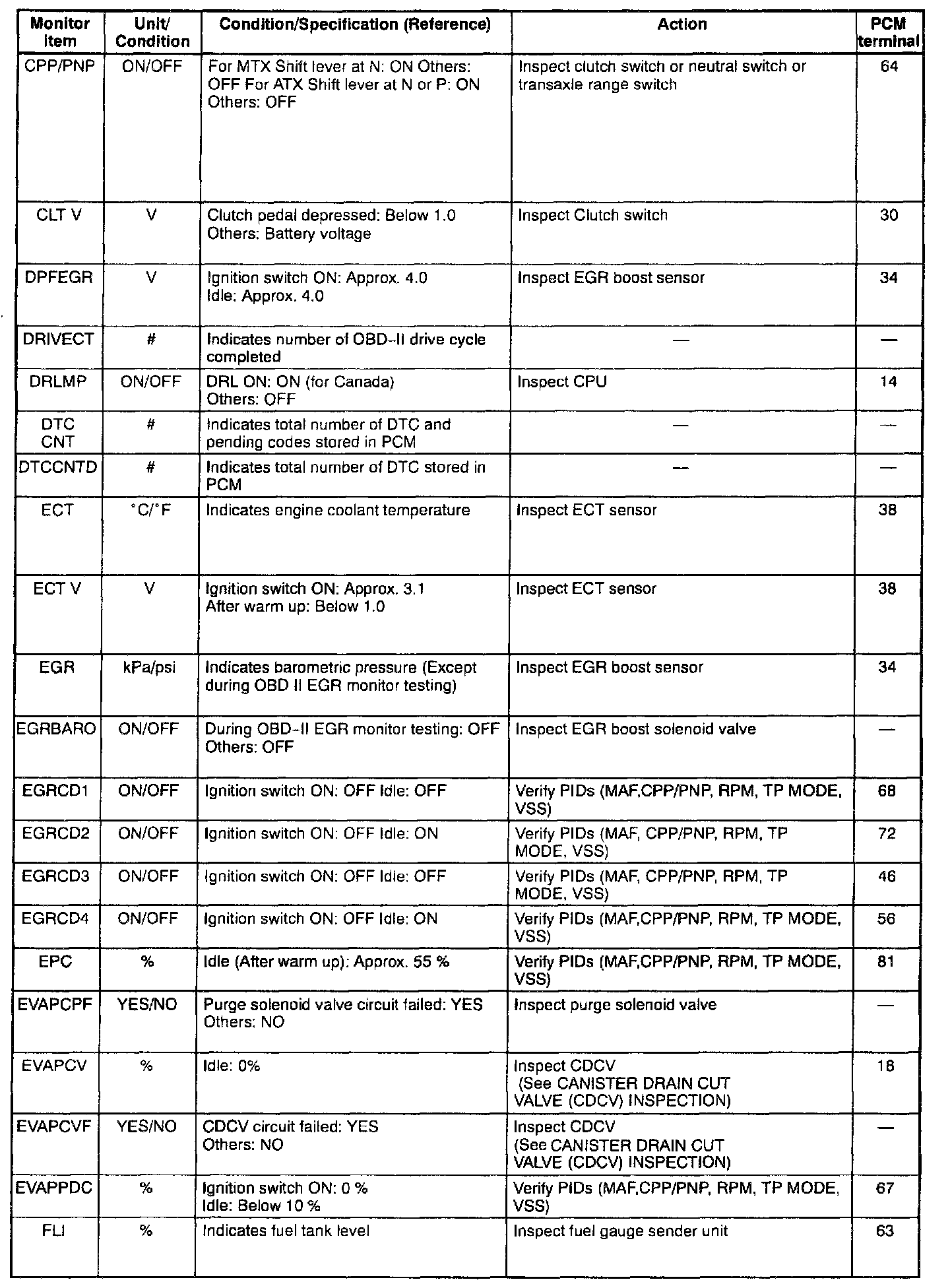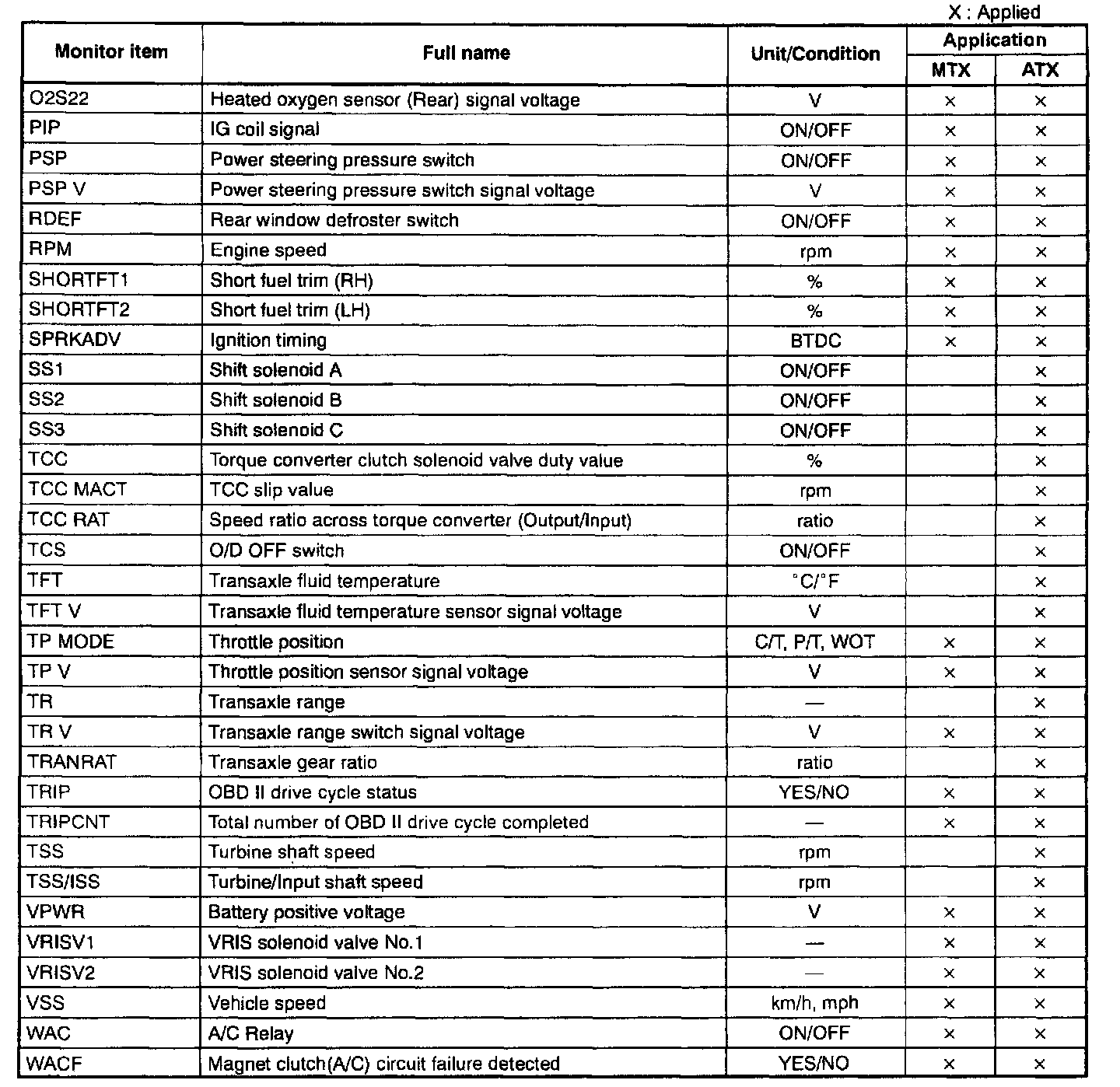 NOTE: The following PIDs may be displayed on the NGS tester, but they are not used for inspection, because these device are not applied to this model.