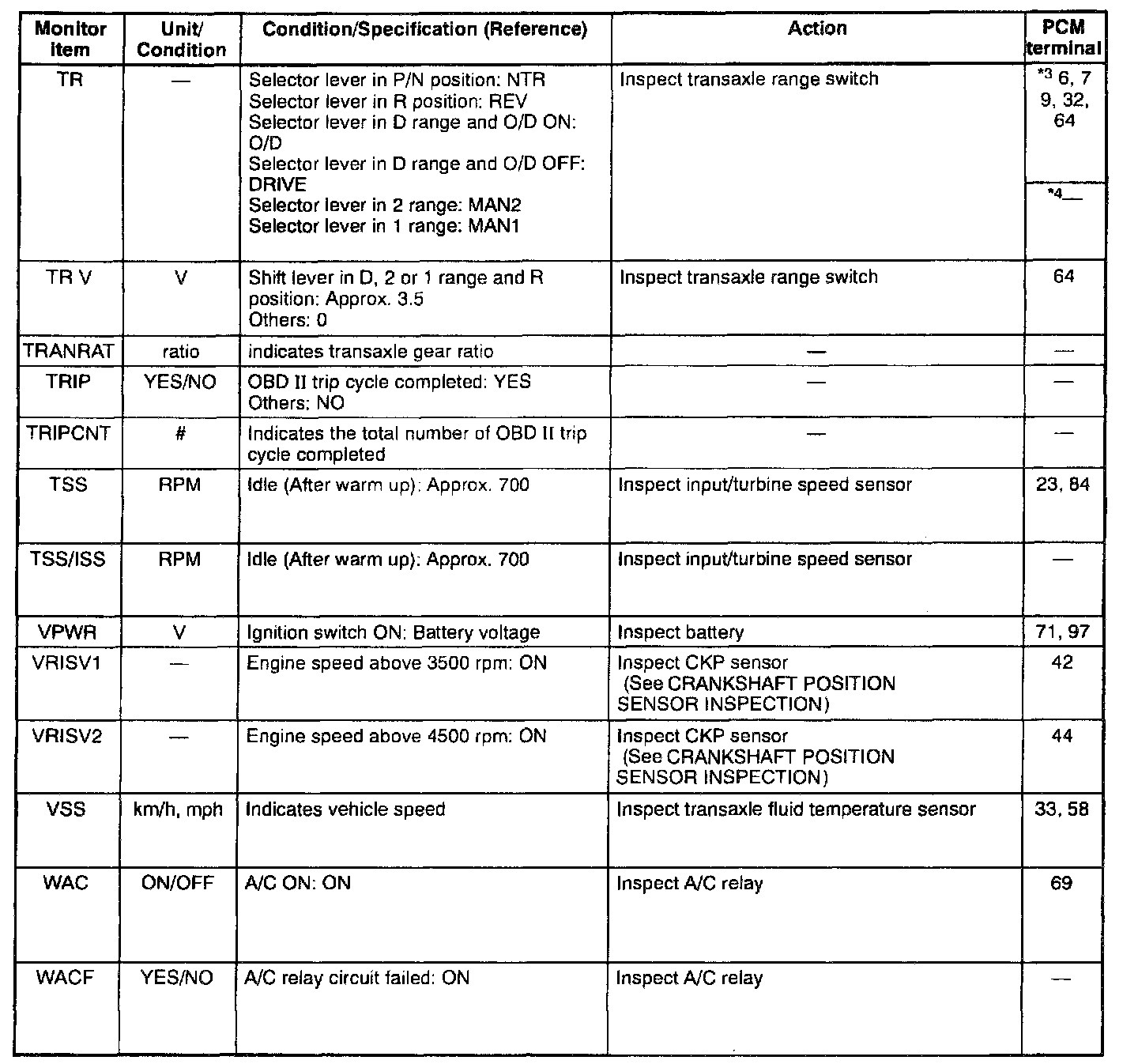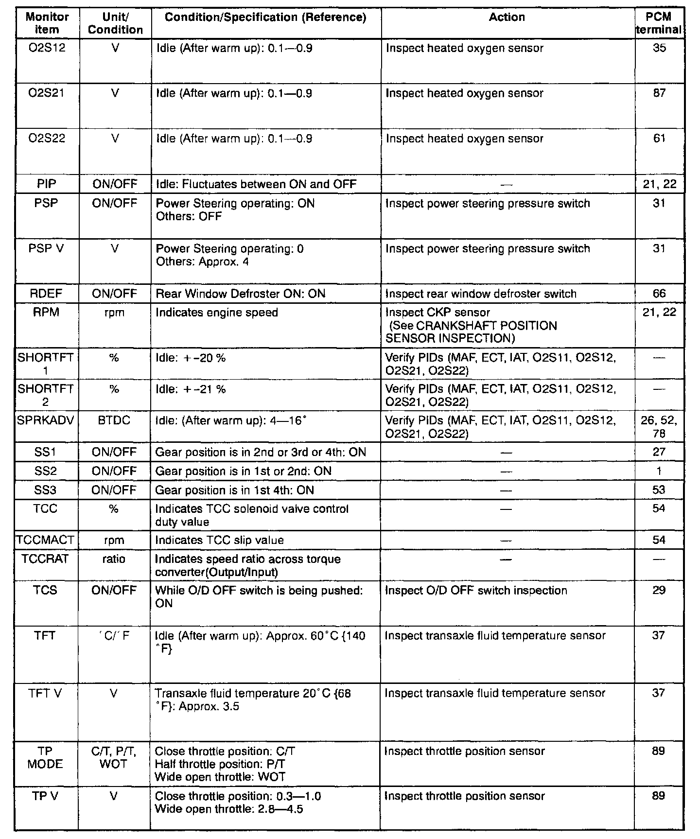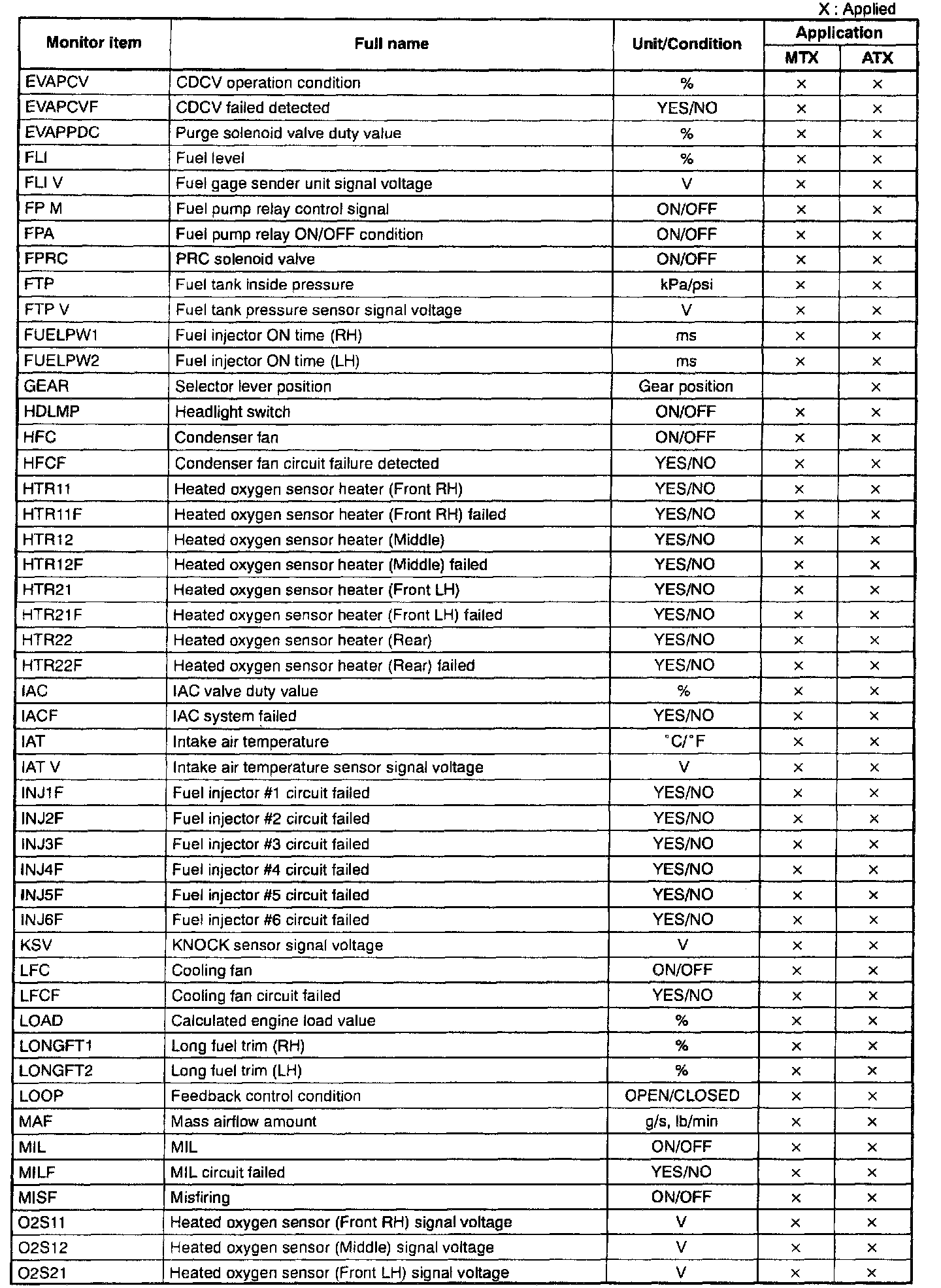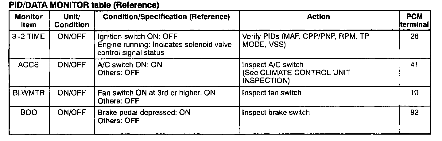 NOTE: The following PIDs may be displayed on the NGS tester, but they are not used for inspection, because these device are not applied to this model.
