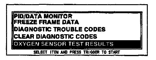 5. Move the cursor to OXYGEN SENSOR TEST RESULTS.