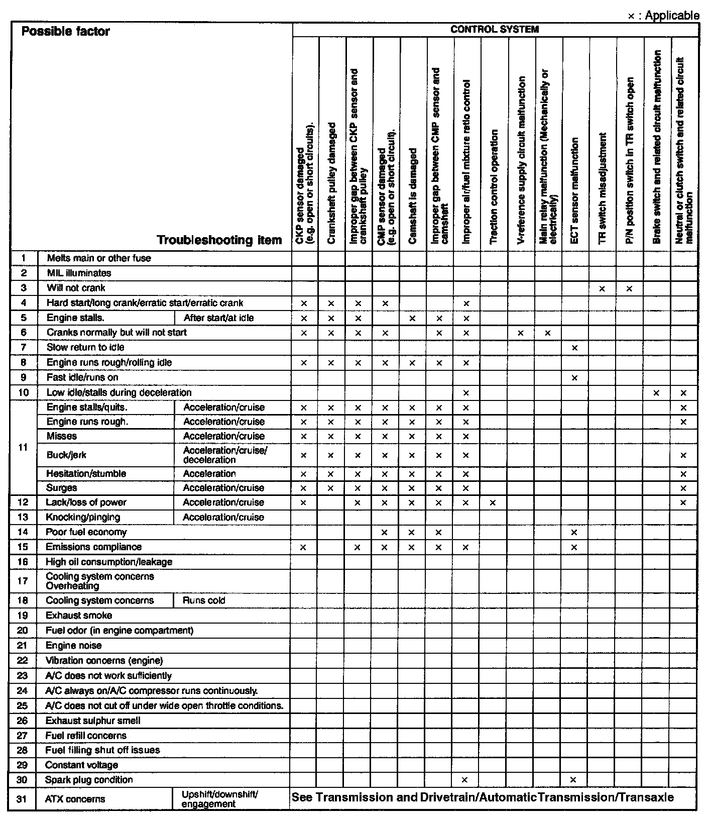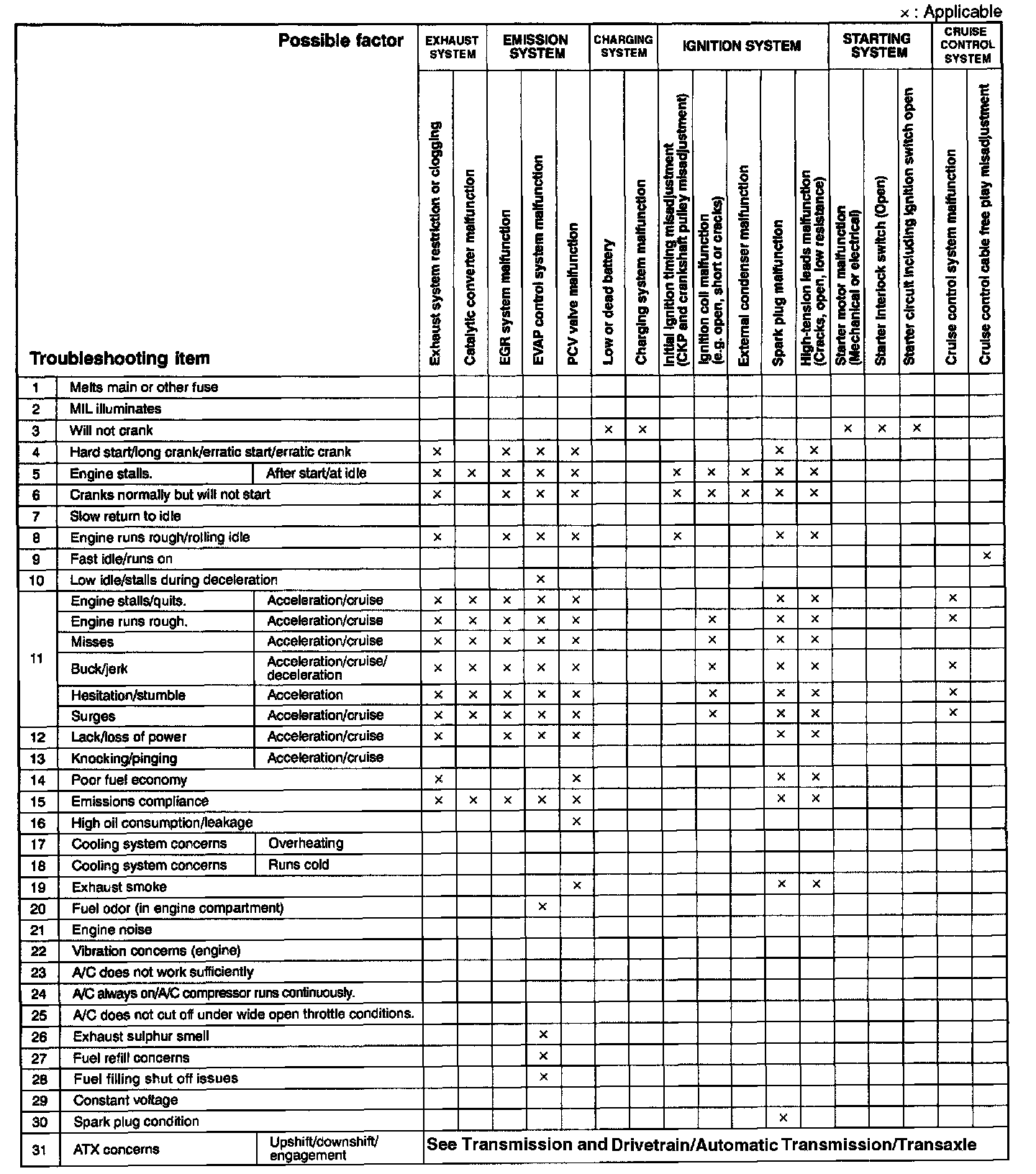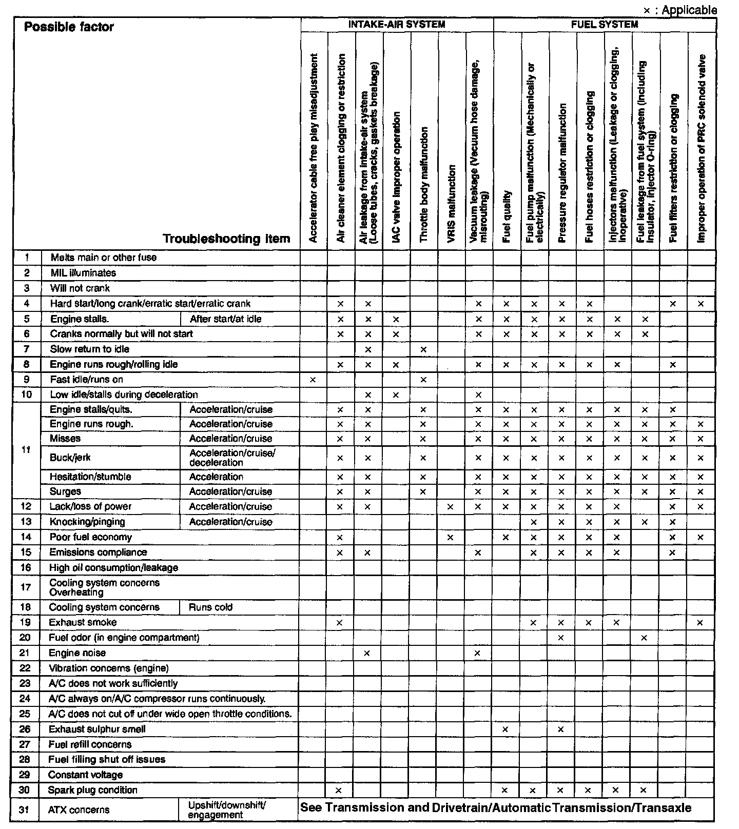 Quick Diagnostic Symptom Chart