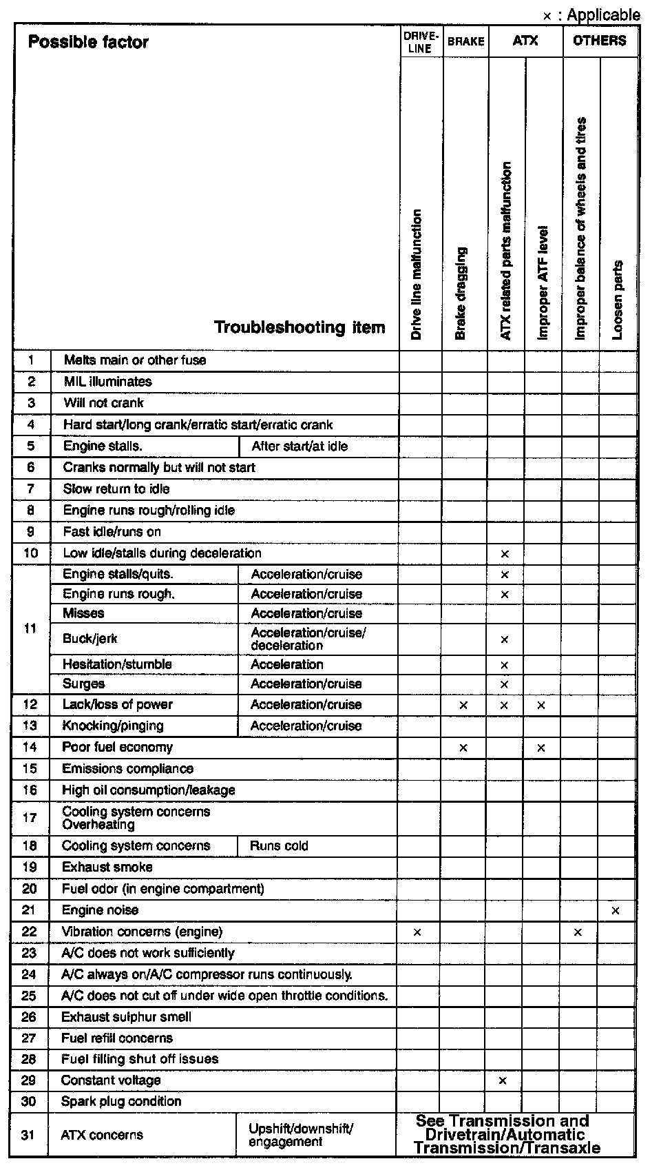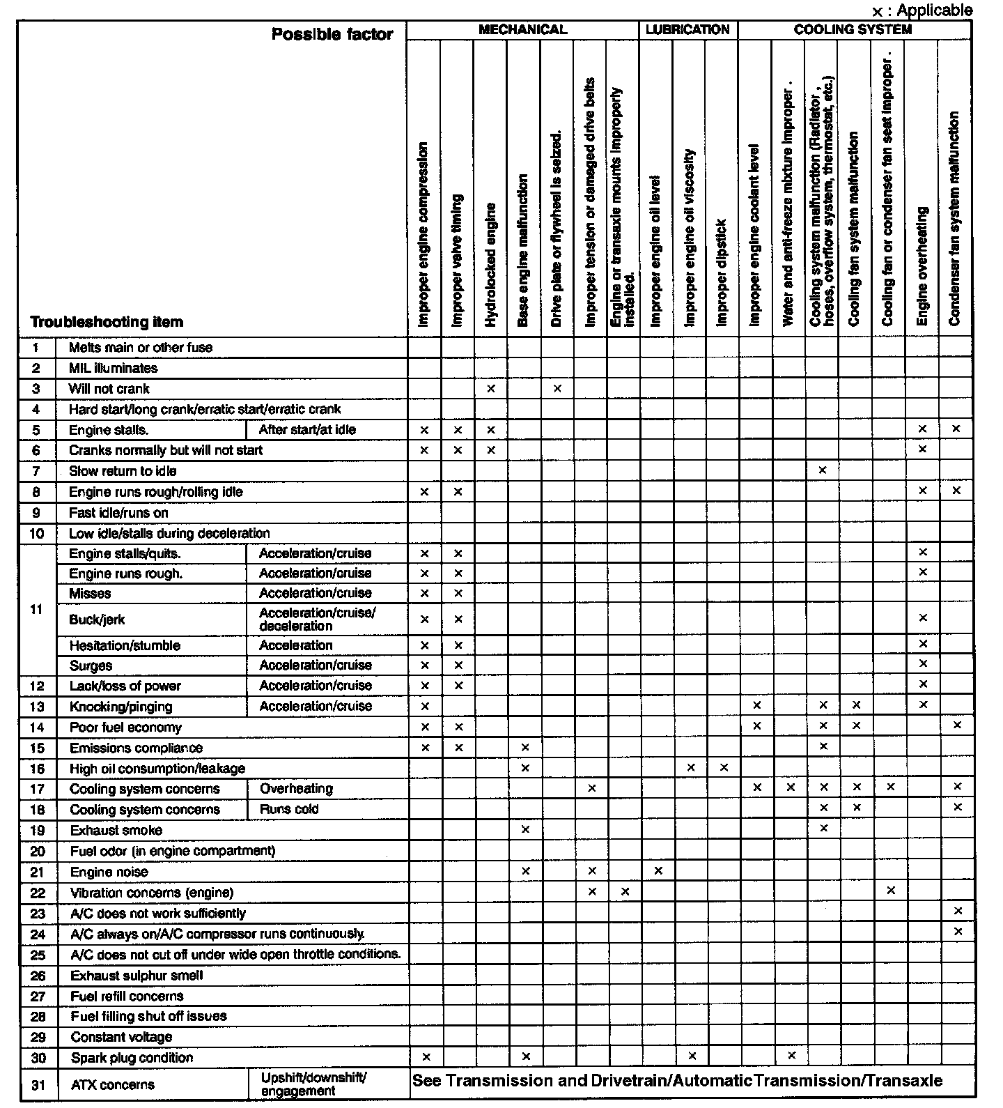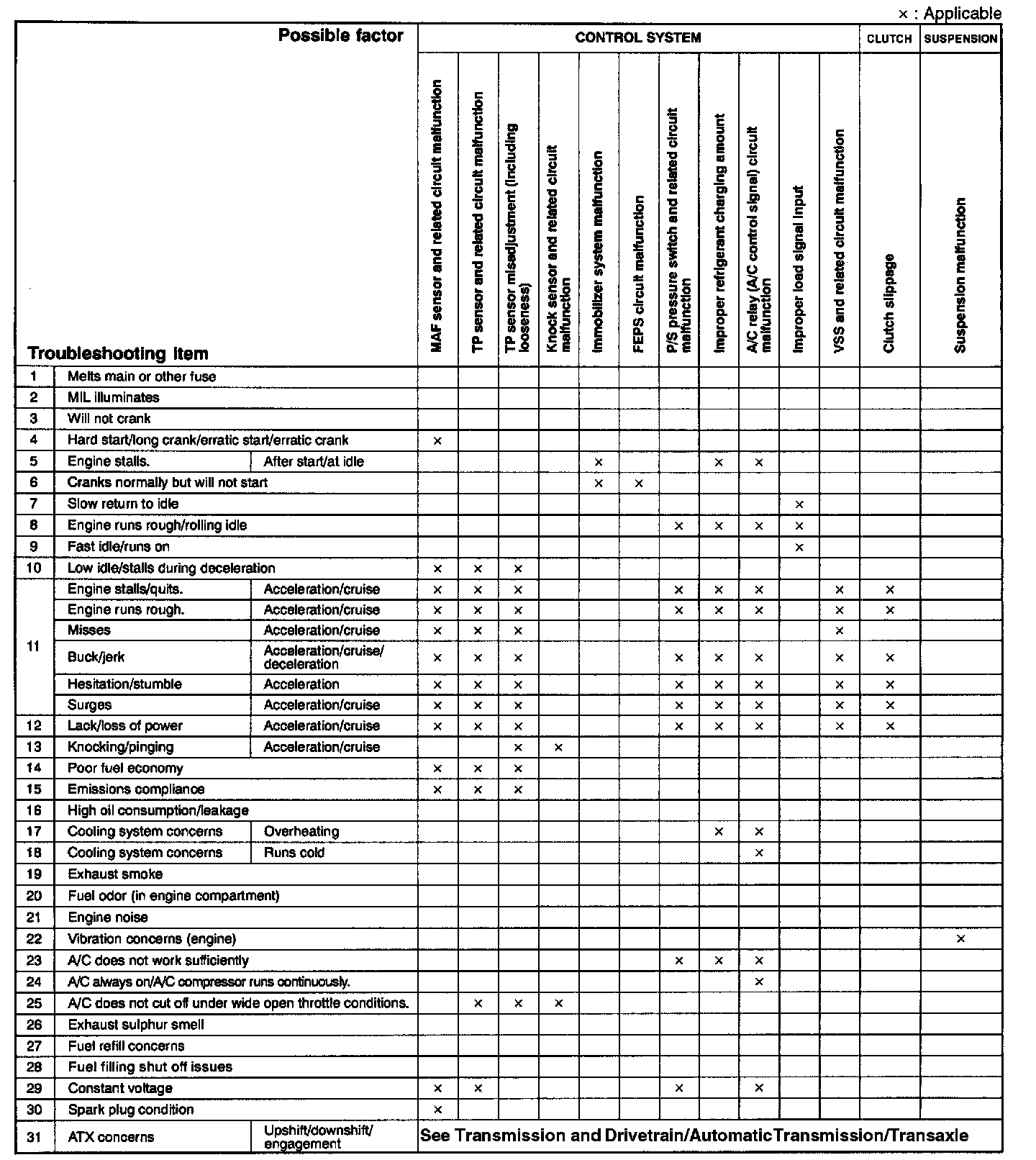 Quick Diagnostic Symptom Chart