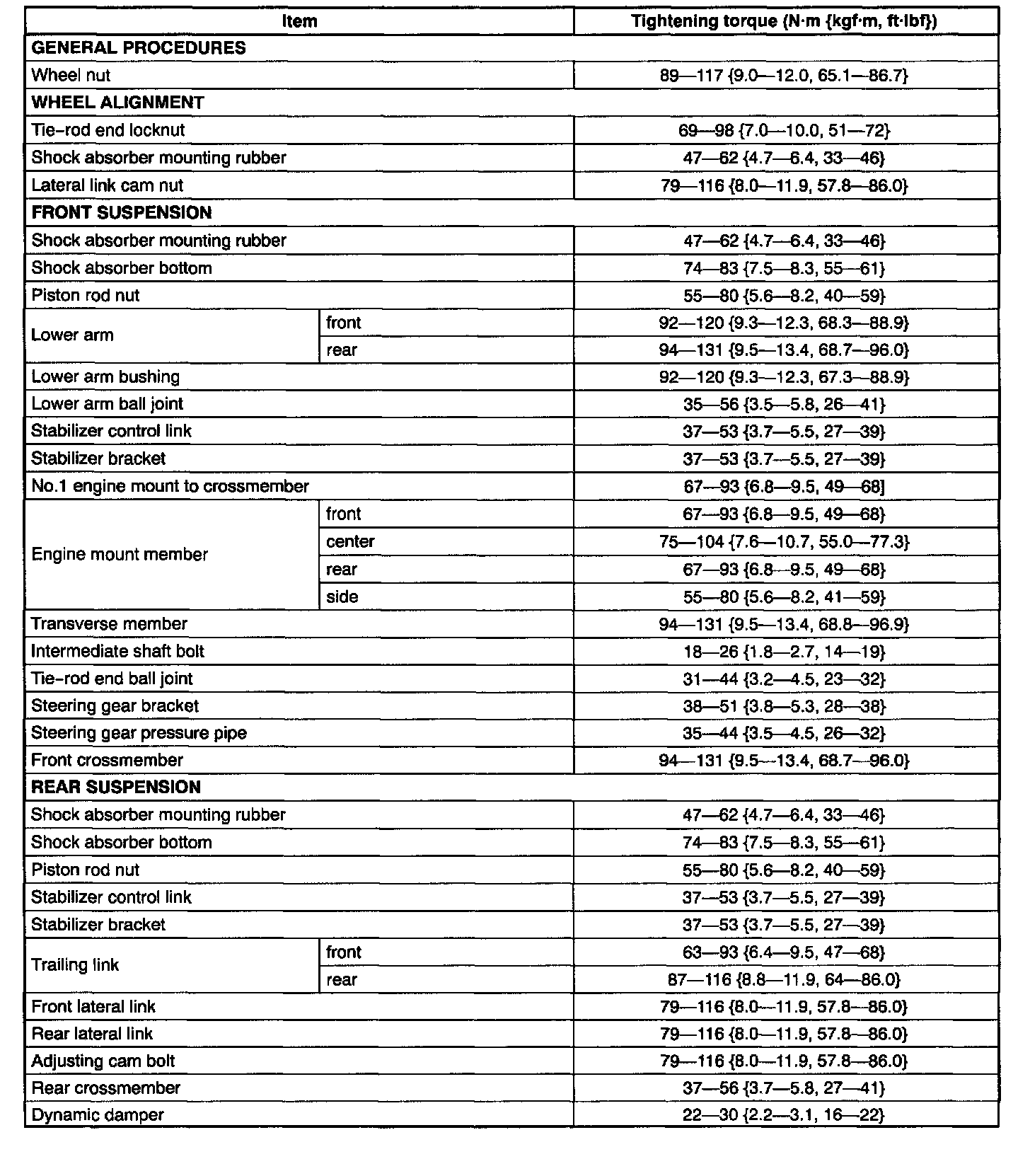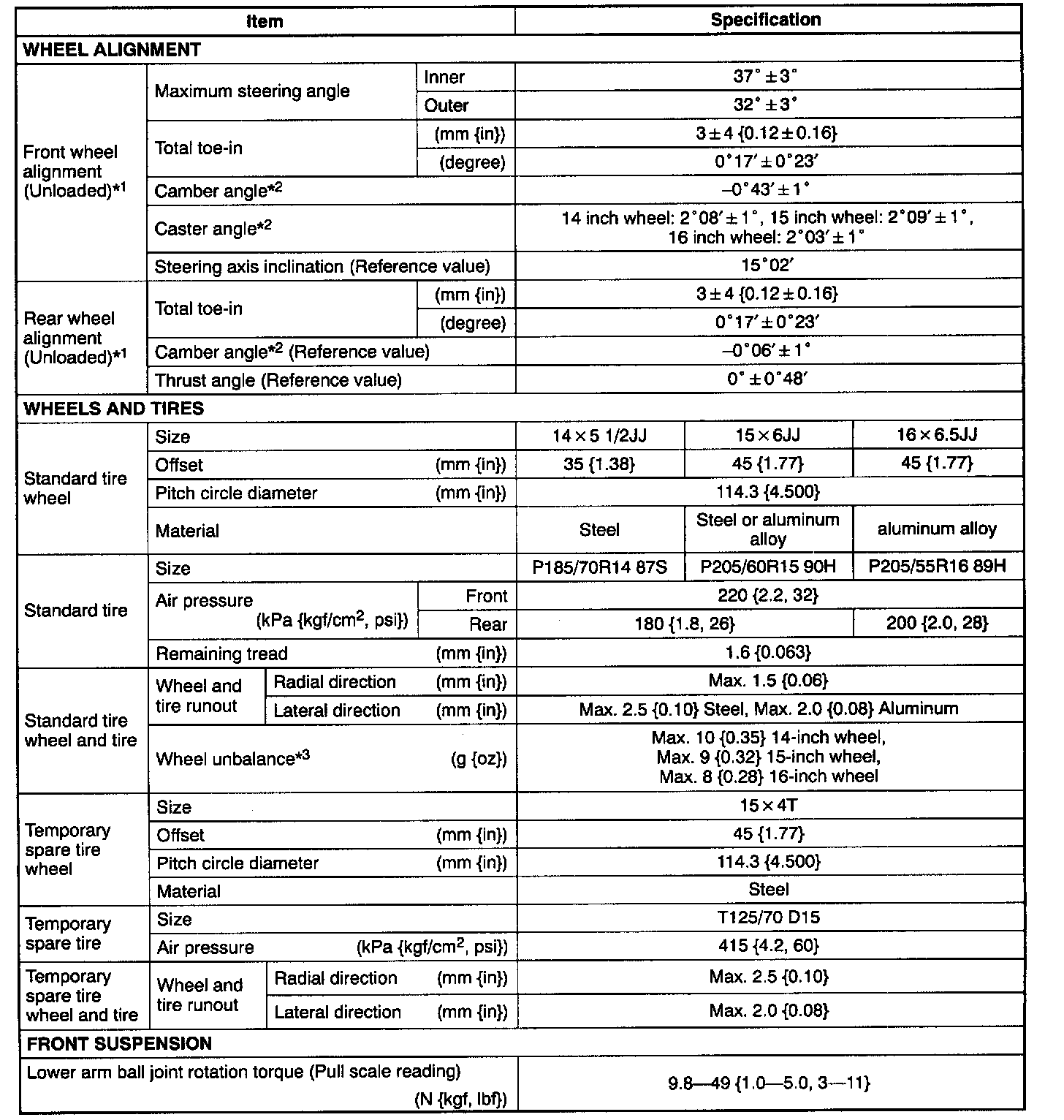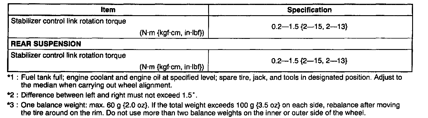 SUSPENSION TECHNICAL DATA