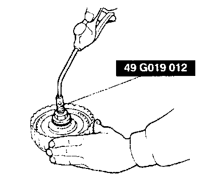 3. Measure the bushing of the torque converter boss. Replace the converter if the bushing is worn.