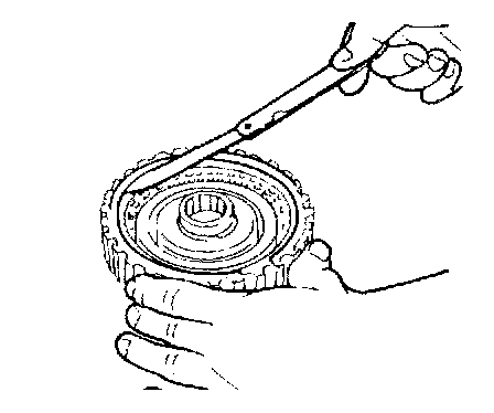 1. While holding the one-way clutch outer race, verify that the inner race rotates smoothly when turned counterclockwise and locks when turned clockwise.