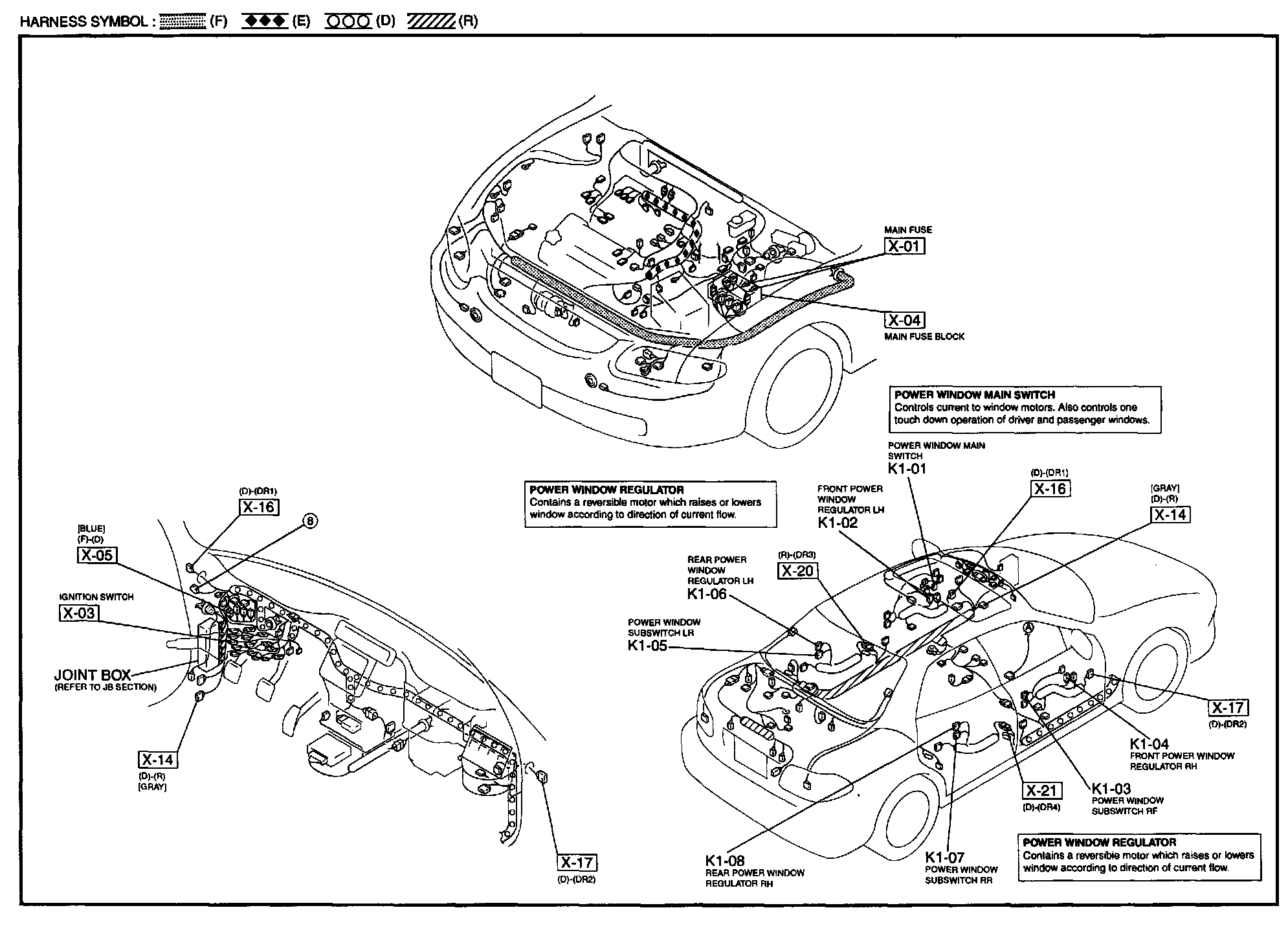 K-1 - Power Window System Harness / Connector Symbols: