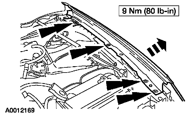 3. Remove the cowl grille extension bolt.