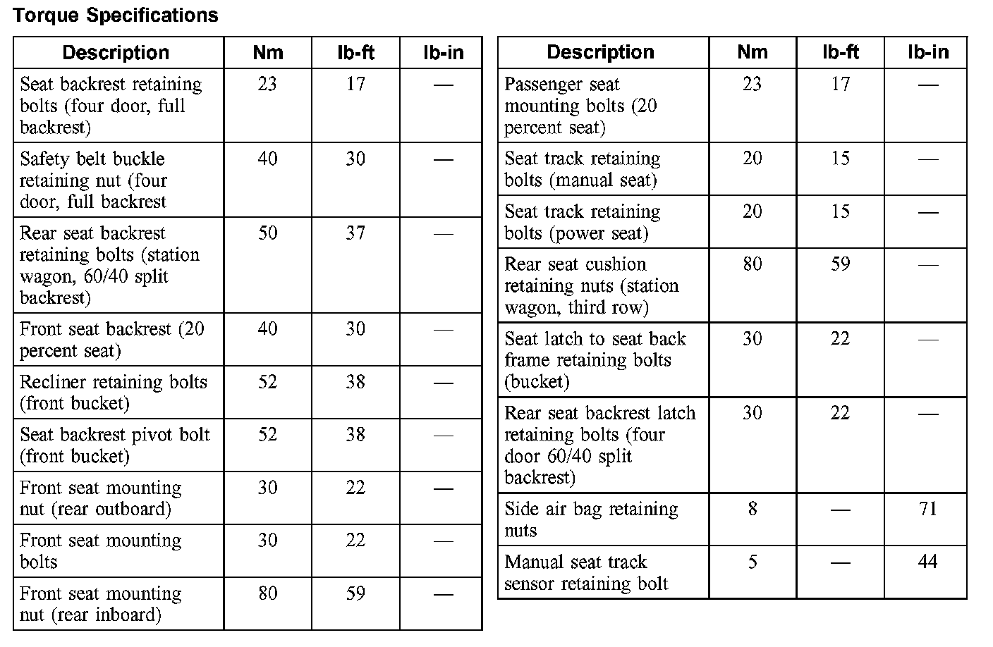 Seats: Specifications