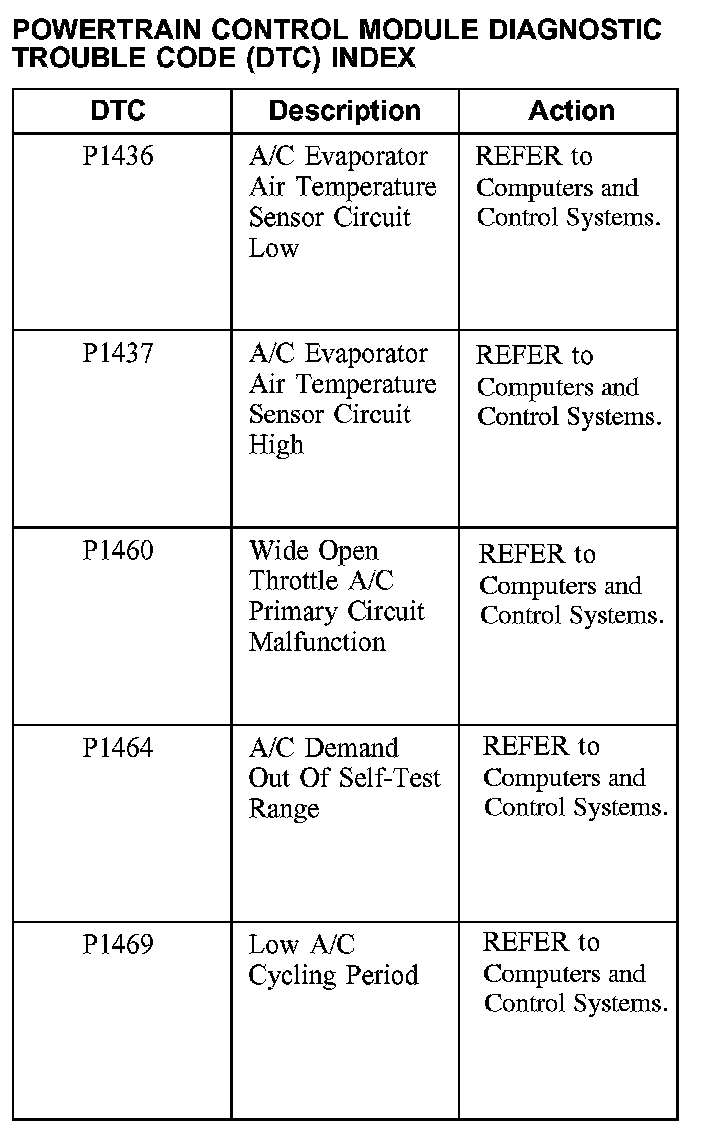 Powertrain Control Module Diagnostic Trouble Code (DTC) Index