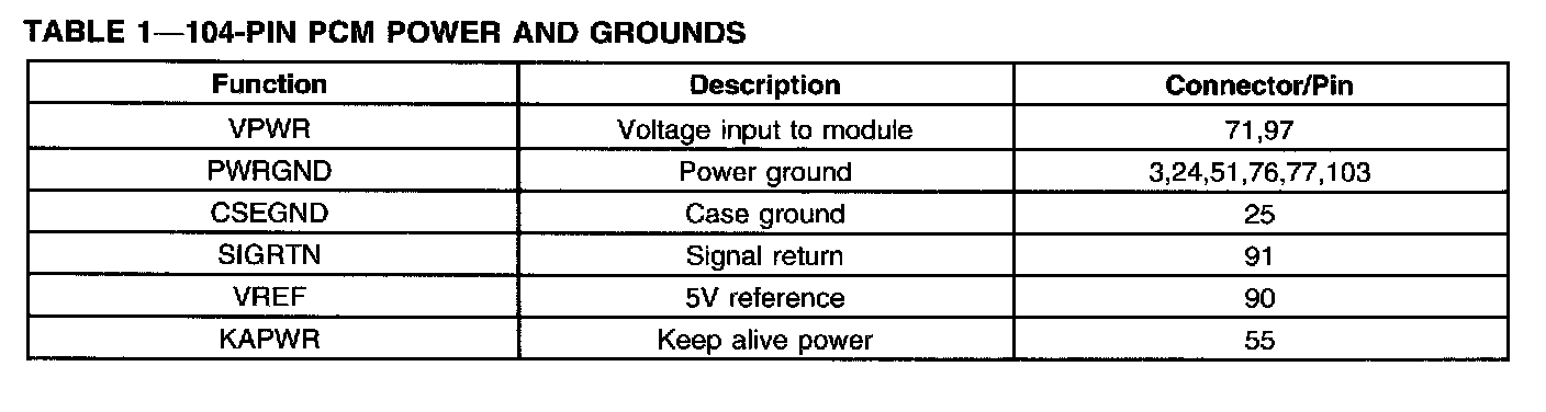 The center of the Electronic EC system is a microprocessor called the powertrain control module (PCM). The PCM receives input from sensors and other electronic components (switches, relays). Based on information received and programmed into its memory, the PCM generates output signals to control various relays, solenoids and actuators. There are several different types of PCM's in use for this model year. Refer to the vehicle PCM application table for PCM type and their applications.