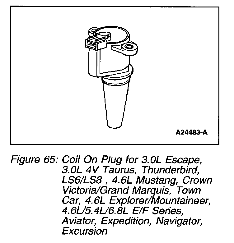 The coil on plug (COP) (Figure 65) ignition operates similar to standard coil pack ignition except each plug has one coil per plug. COP has three different modes of operation: engine crank, engine running, and CMP Failure Mode Effects Management (FMEM).