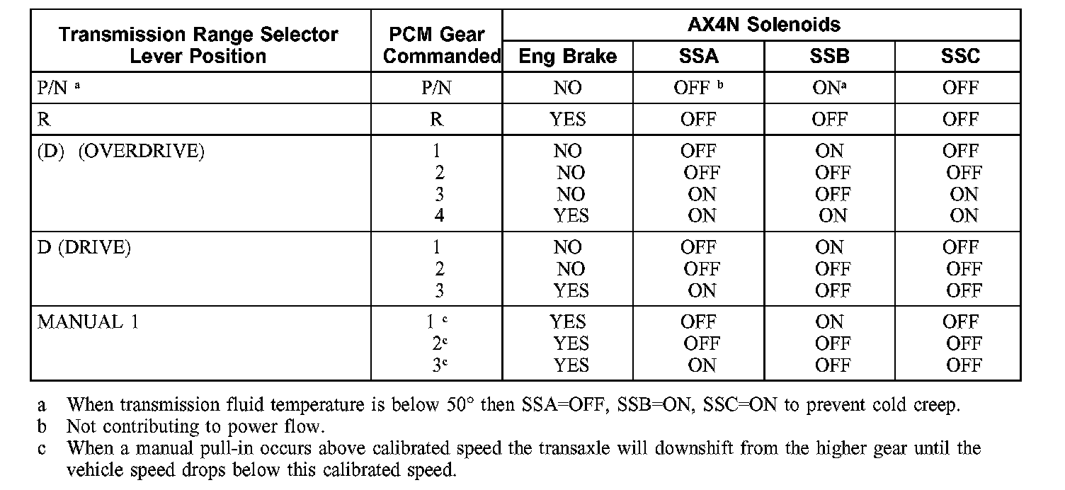 Solenoid Operation Chart