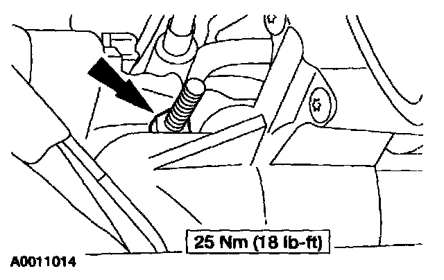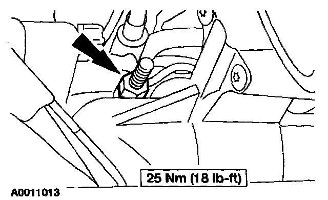 7. Remove the upper starter motor nut and stud.