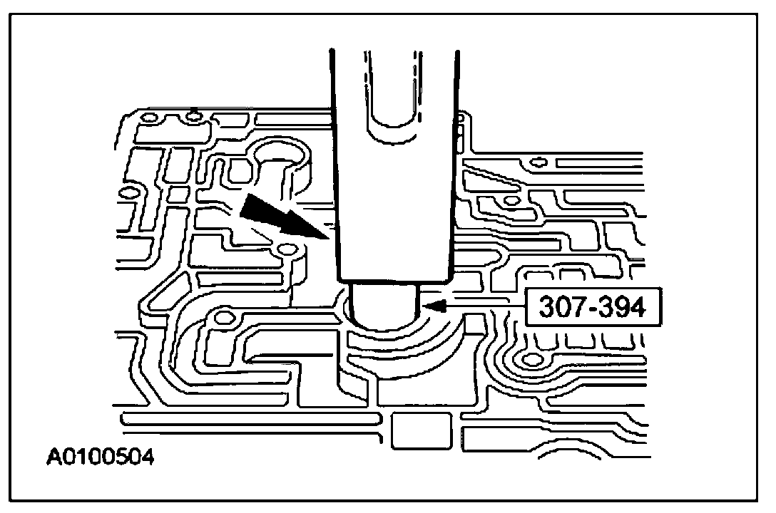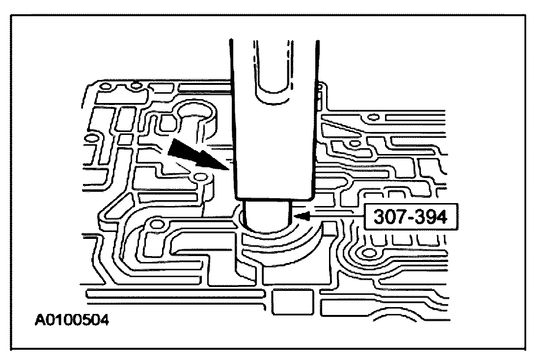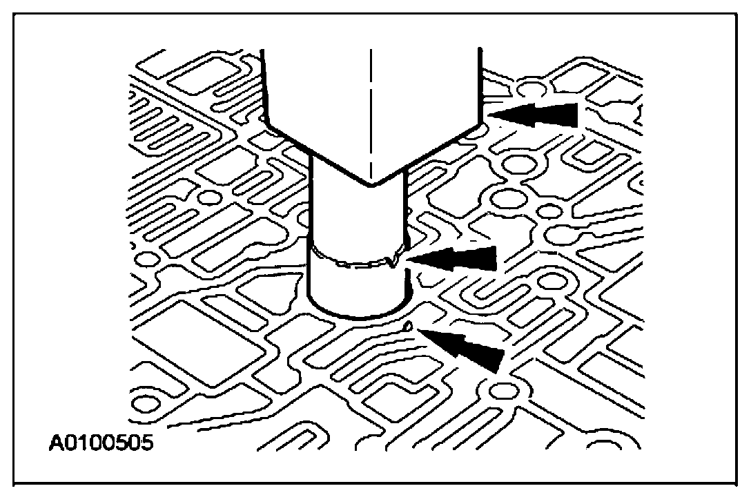 ^ Verify that the hole in the valve body sleeve aligns with the hole in the circuit passage.
