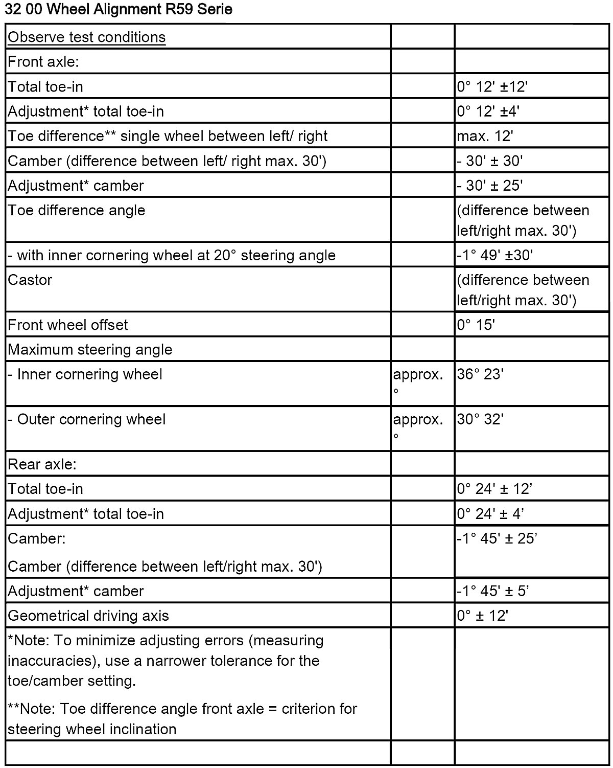 32 00 Wheel Alignment R59 Series