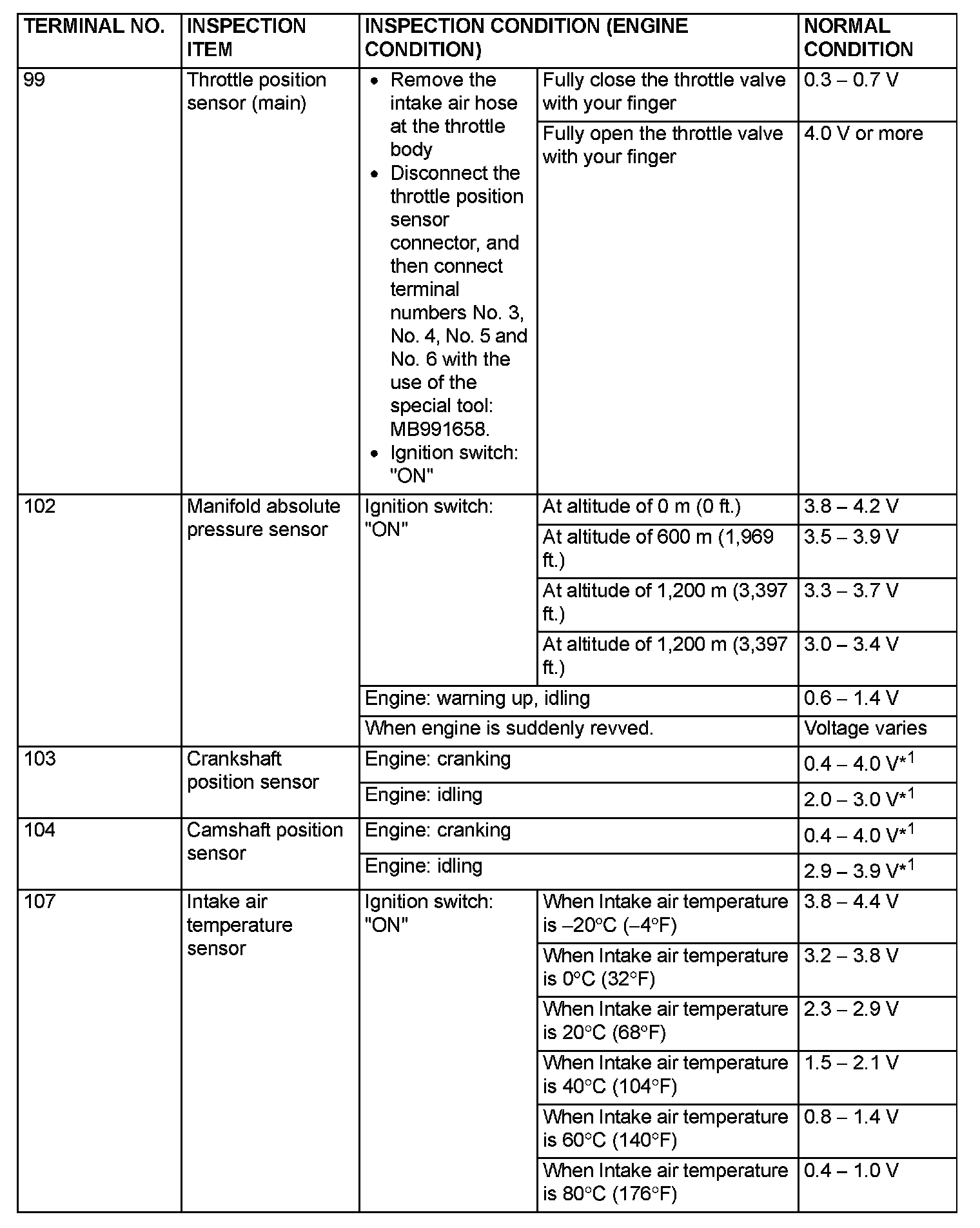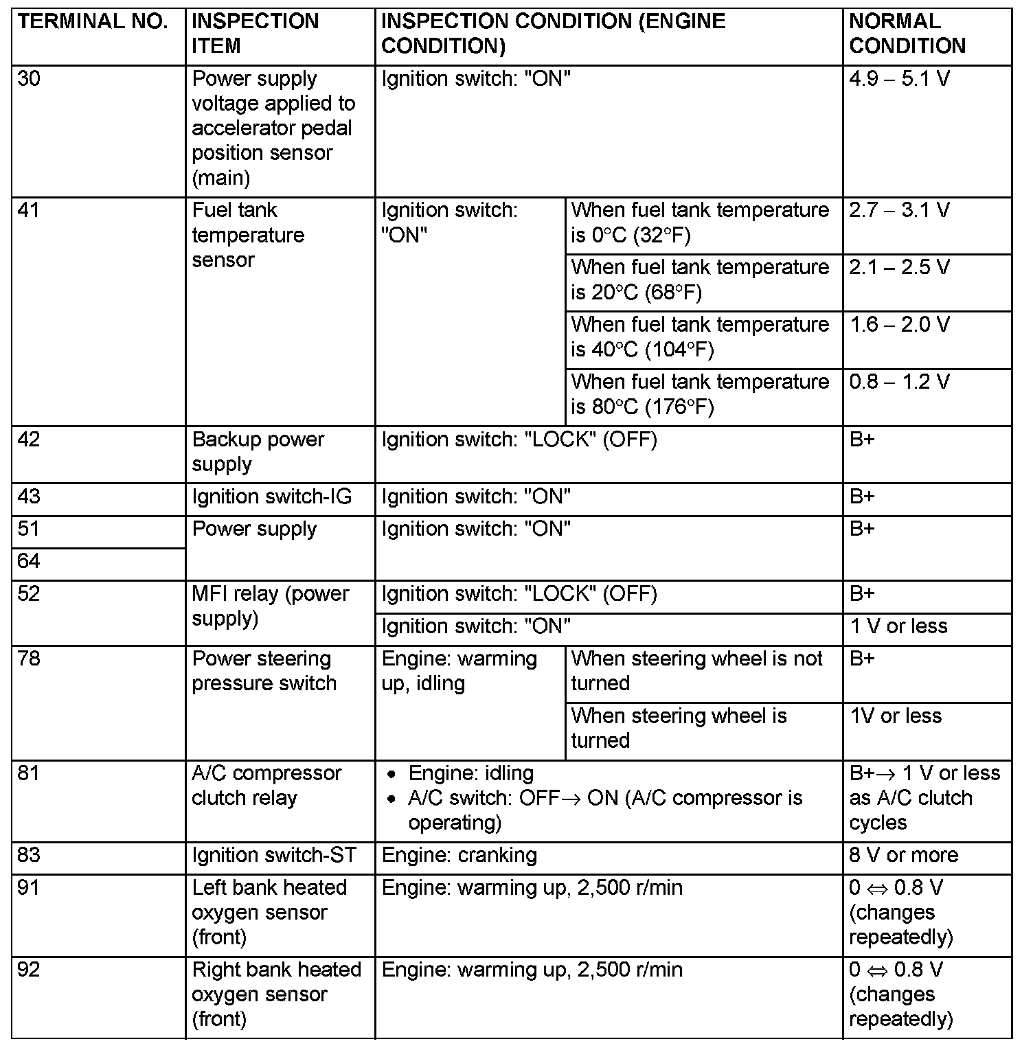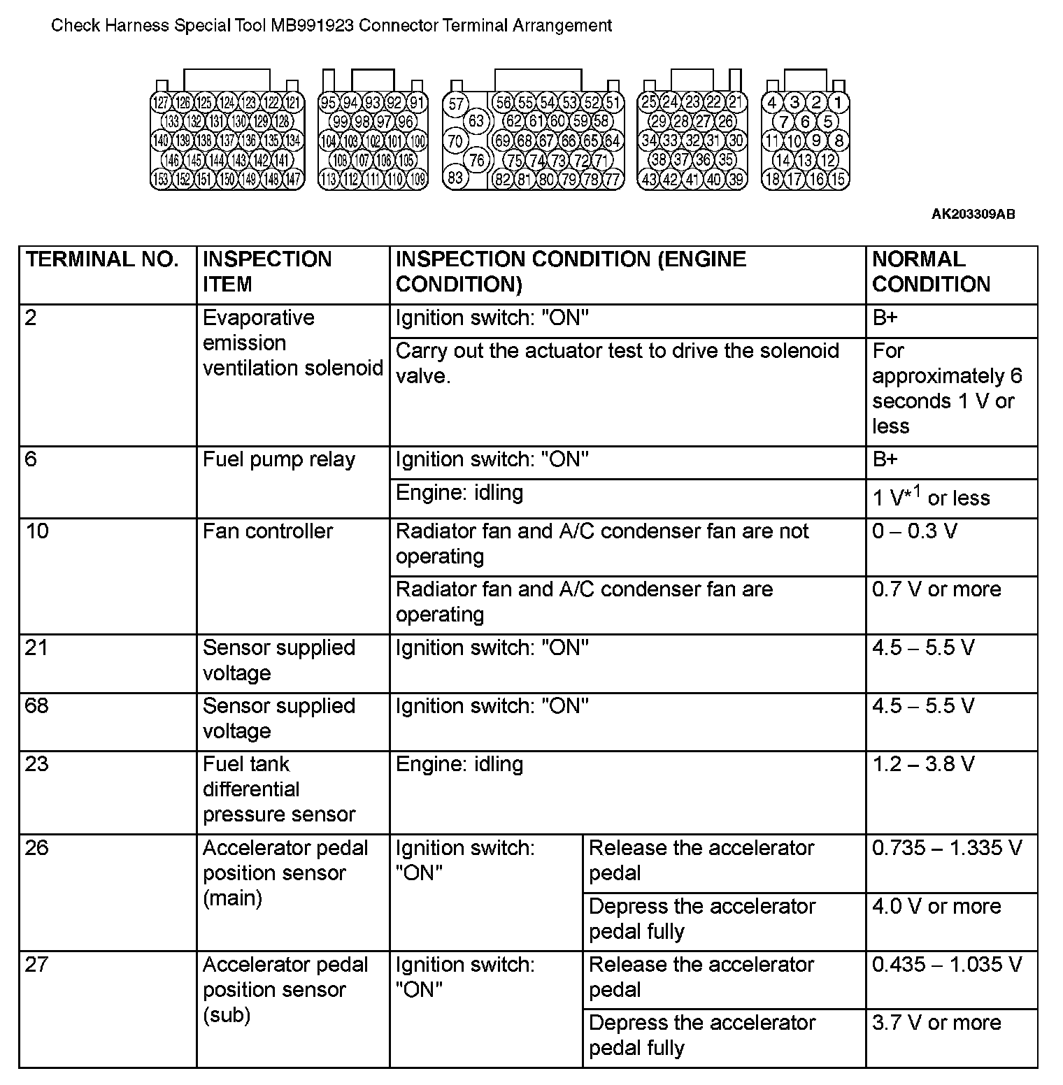 PCM Harness Side Connector Terminal Arrangement Part 1: