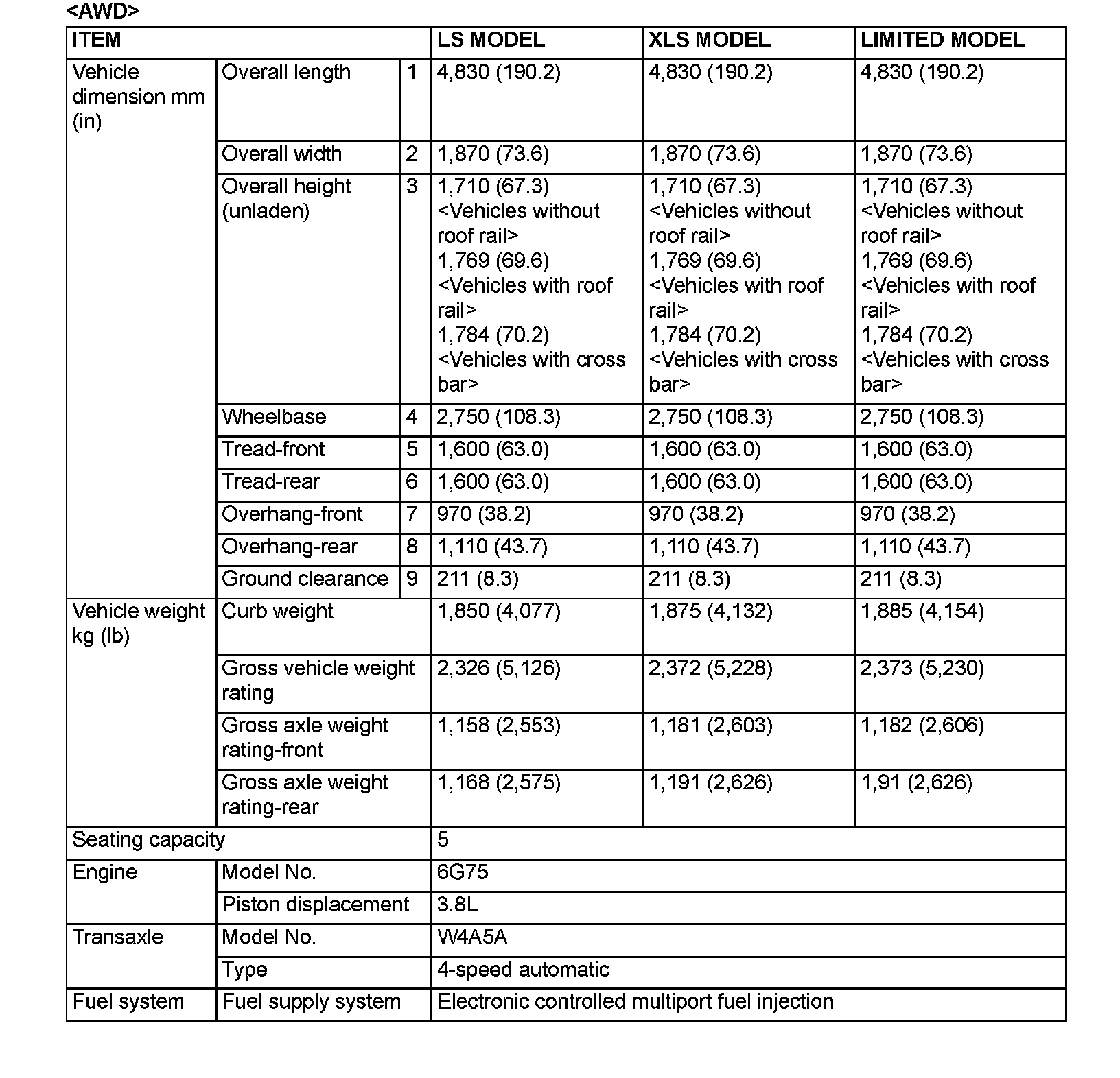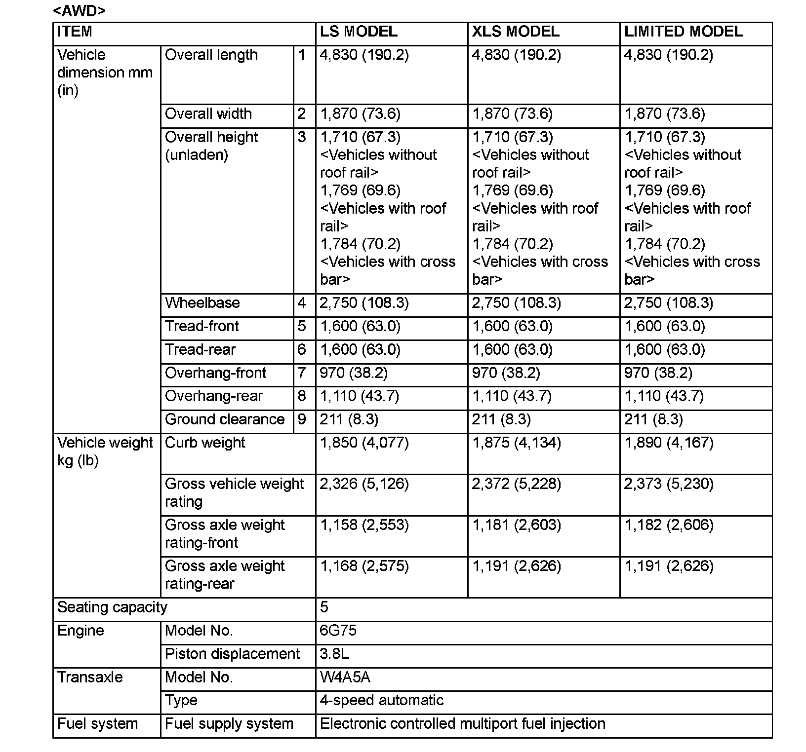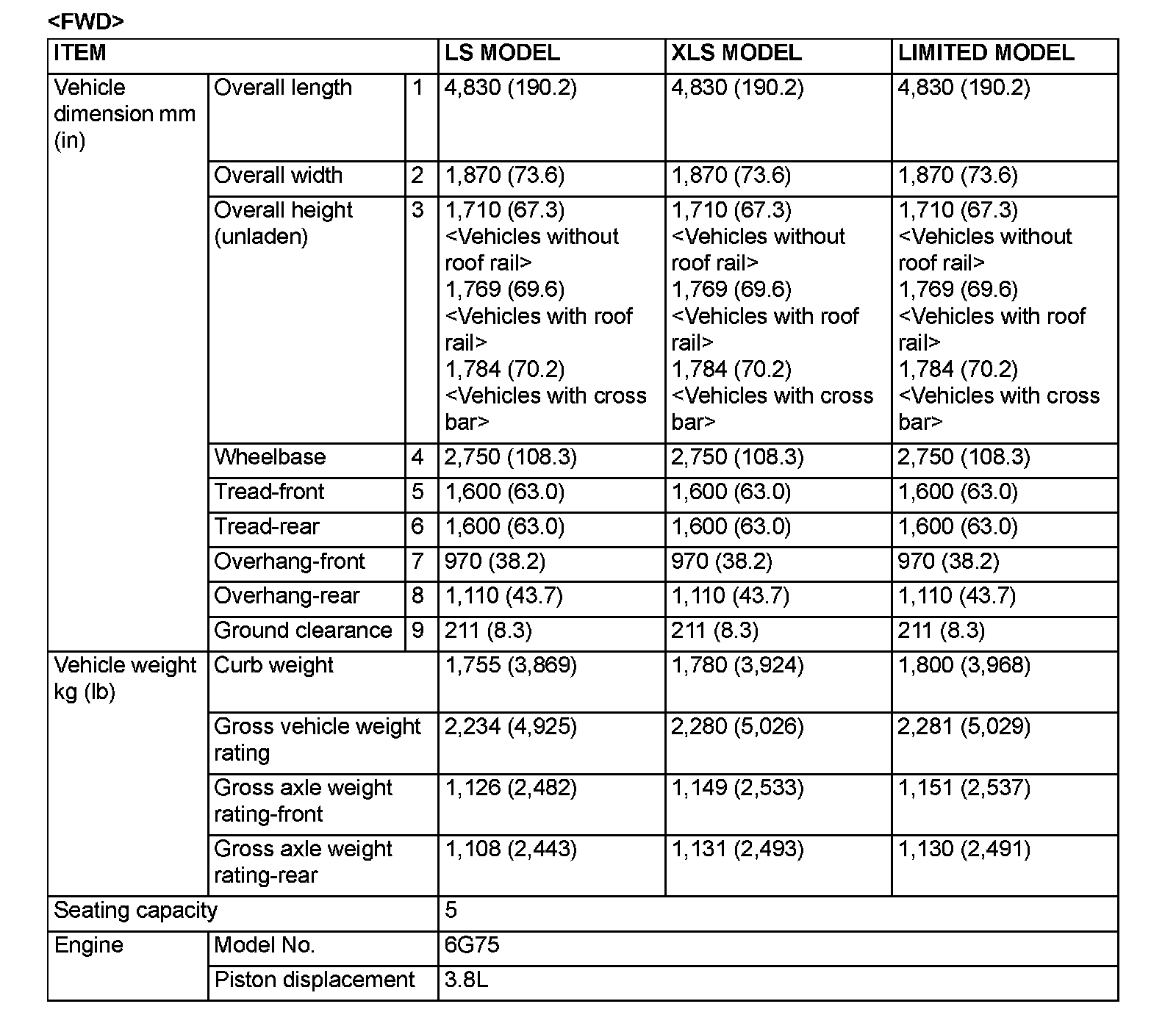 GENERAL SPECIFICATIONS VEHICLES FOR CANADA