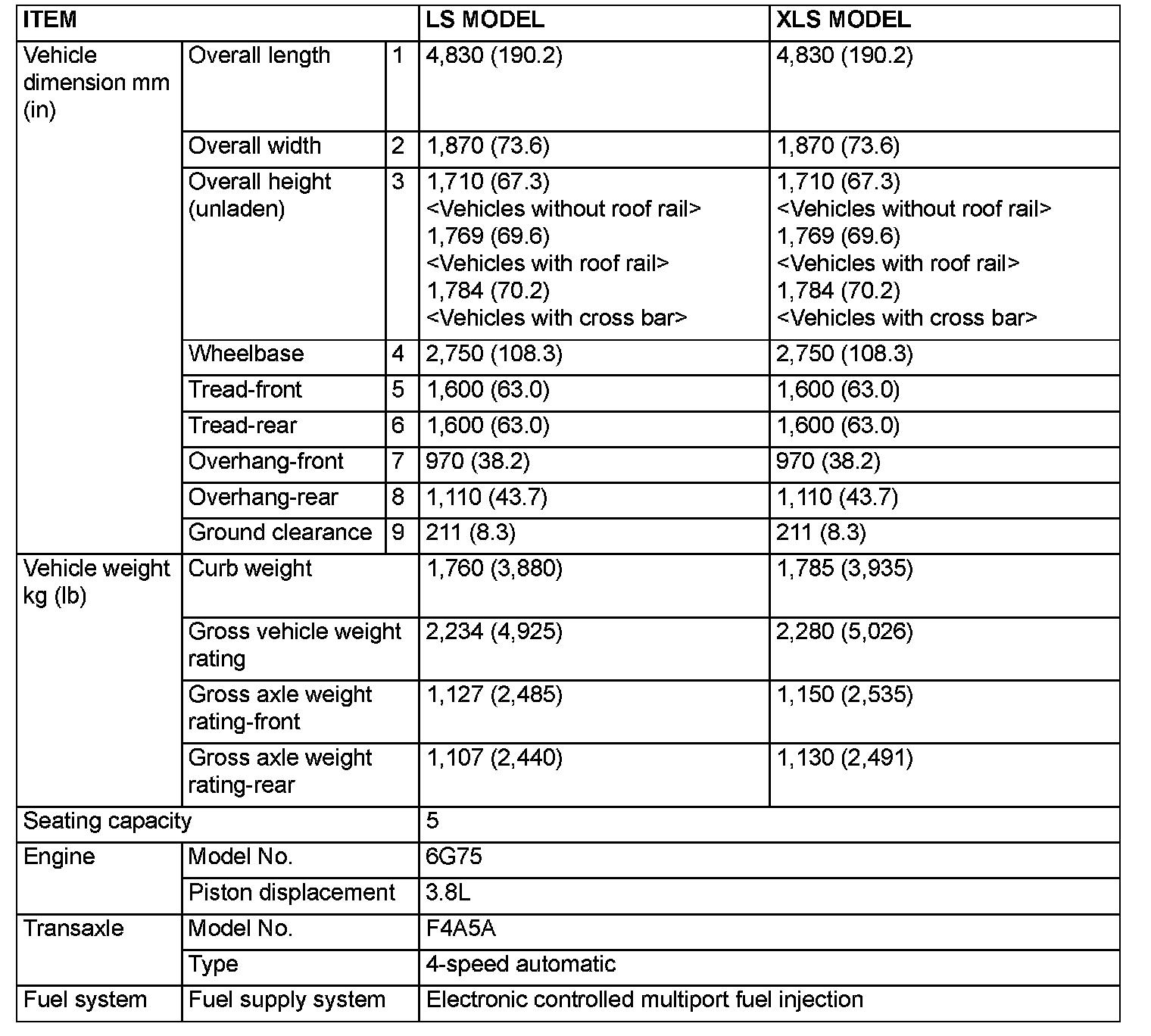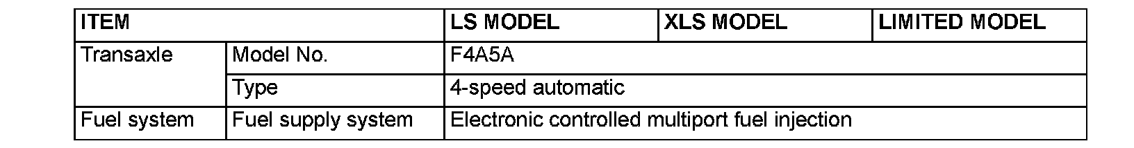 GENERAL SPECIFICATIONS VEHICLES FOR USA