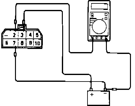6. Using an volt meter, check the Voltage between relay harness terminal 10 and ground.