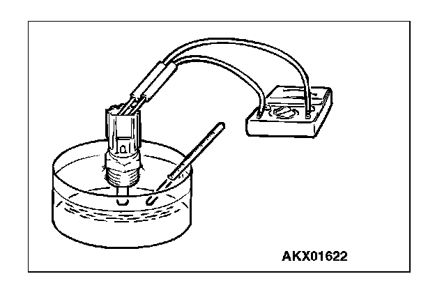 2. With the temperature sensing portion of engine coolant temperature sensor immersed in hot water, check the resistance.