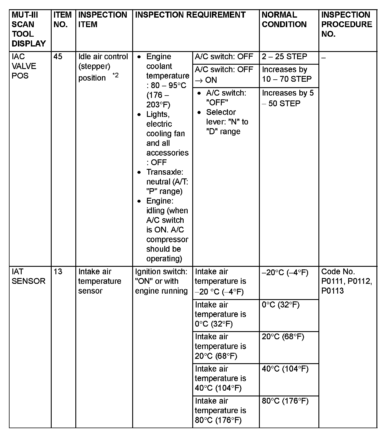 *1: If the idle speed is lower than the standard value on a very cold engine [approximately -20 °C ( -4 °F)] even when the IAC motor is fully opened, the air volume limiter built in the throttle body could be defective.