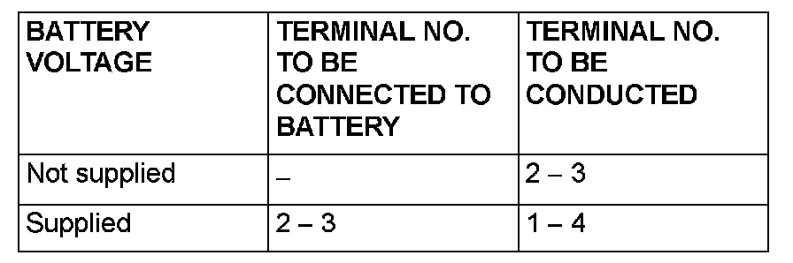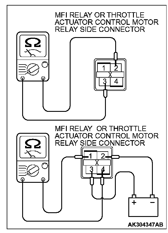 Inspect the MFI relay and throttle actuator control motor relay for continuity in accordance with the chart shown.