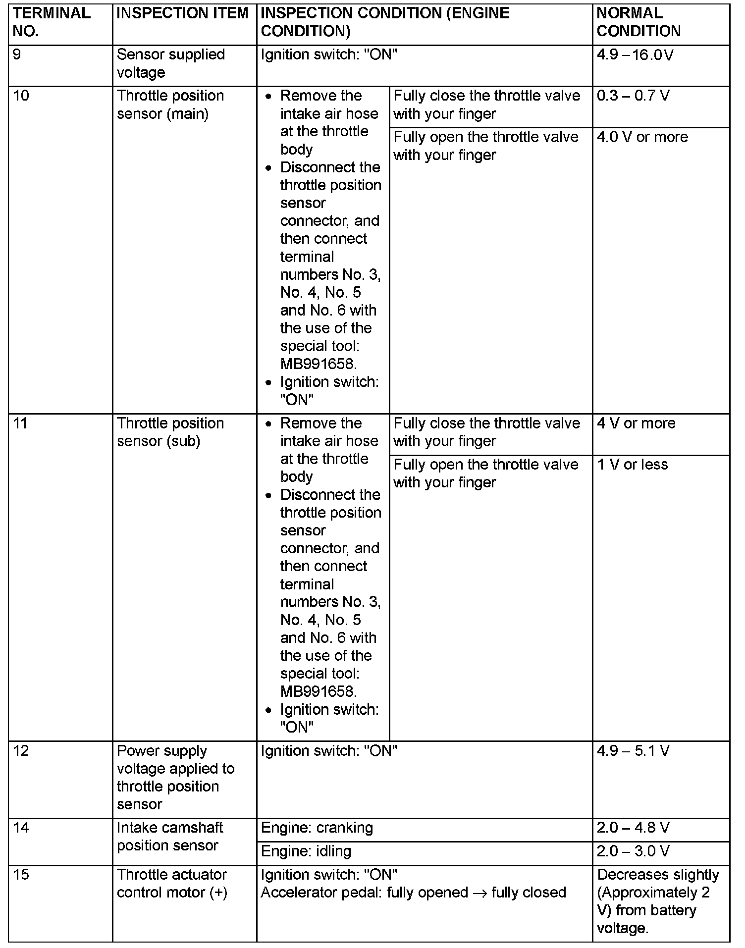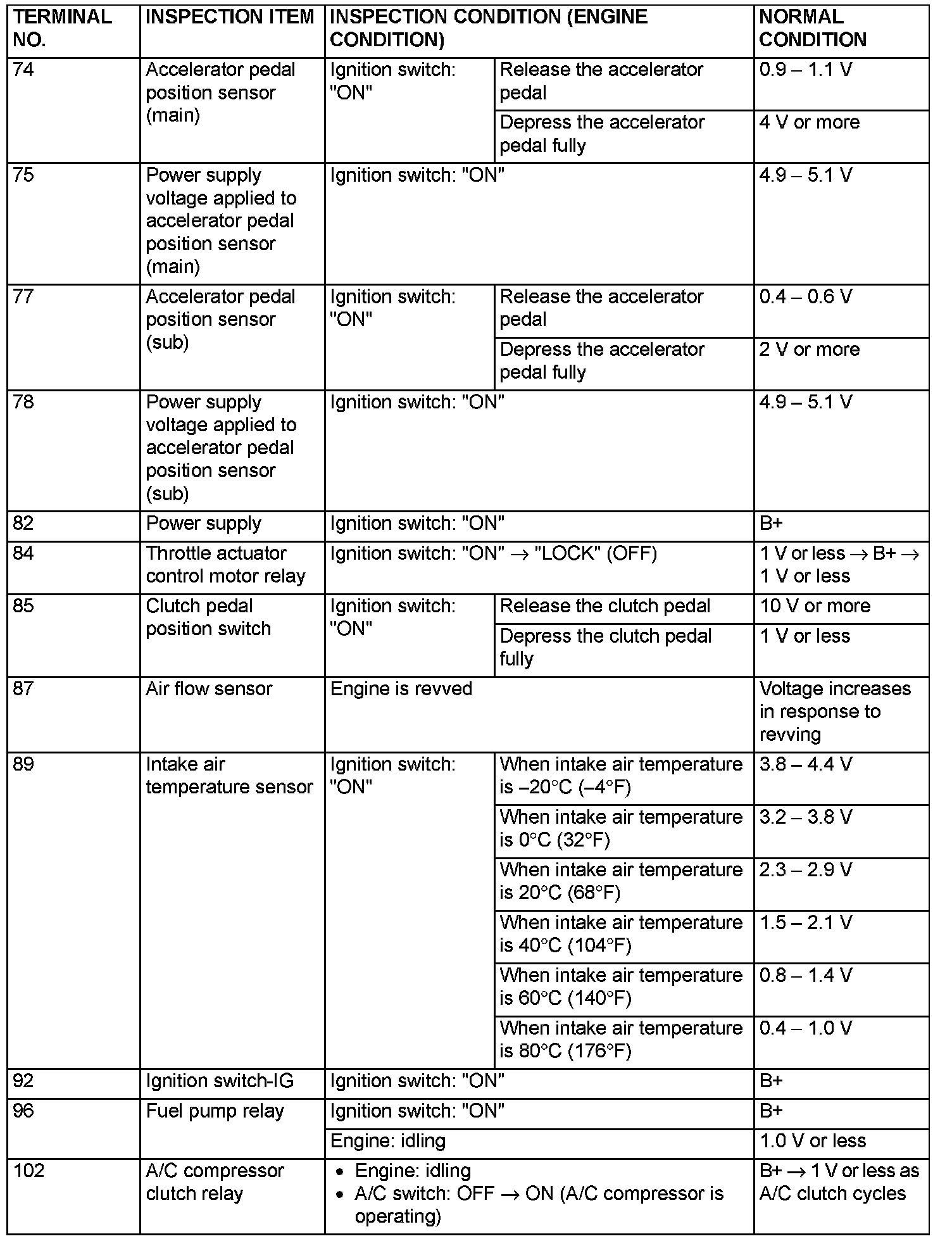 Terminal Voltage Check Chart (Part 2):