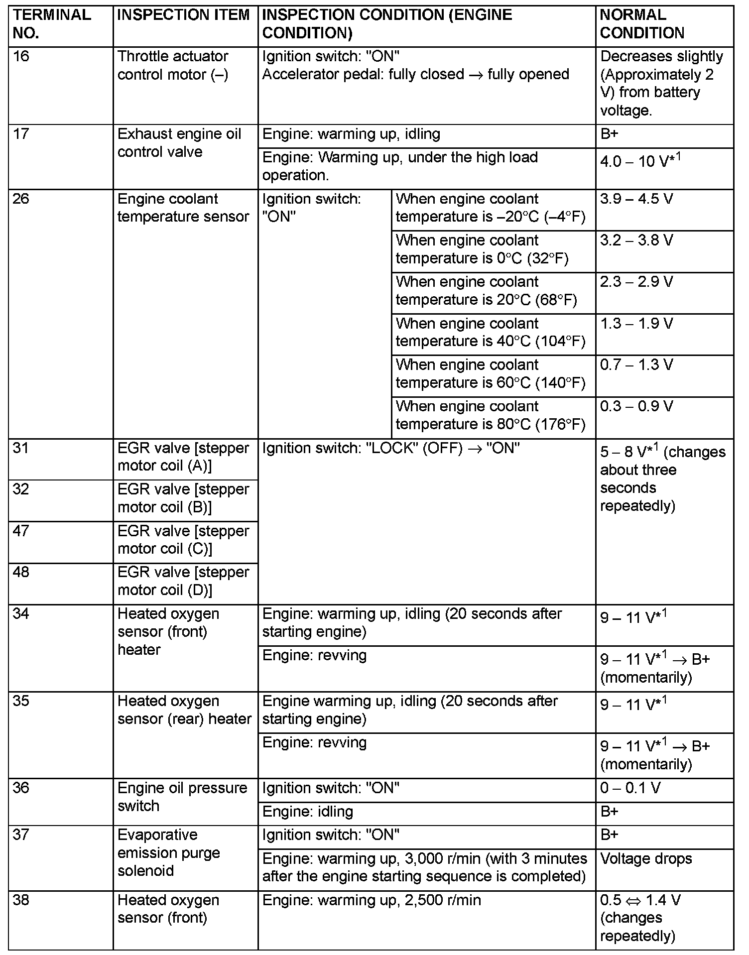 Terminal Voltage Check Chart (Part 1):