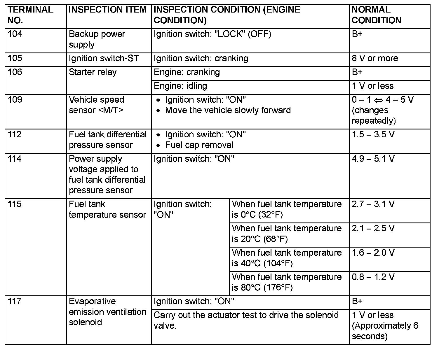 Terminal Voltage Check Chart (Part 5):