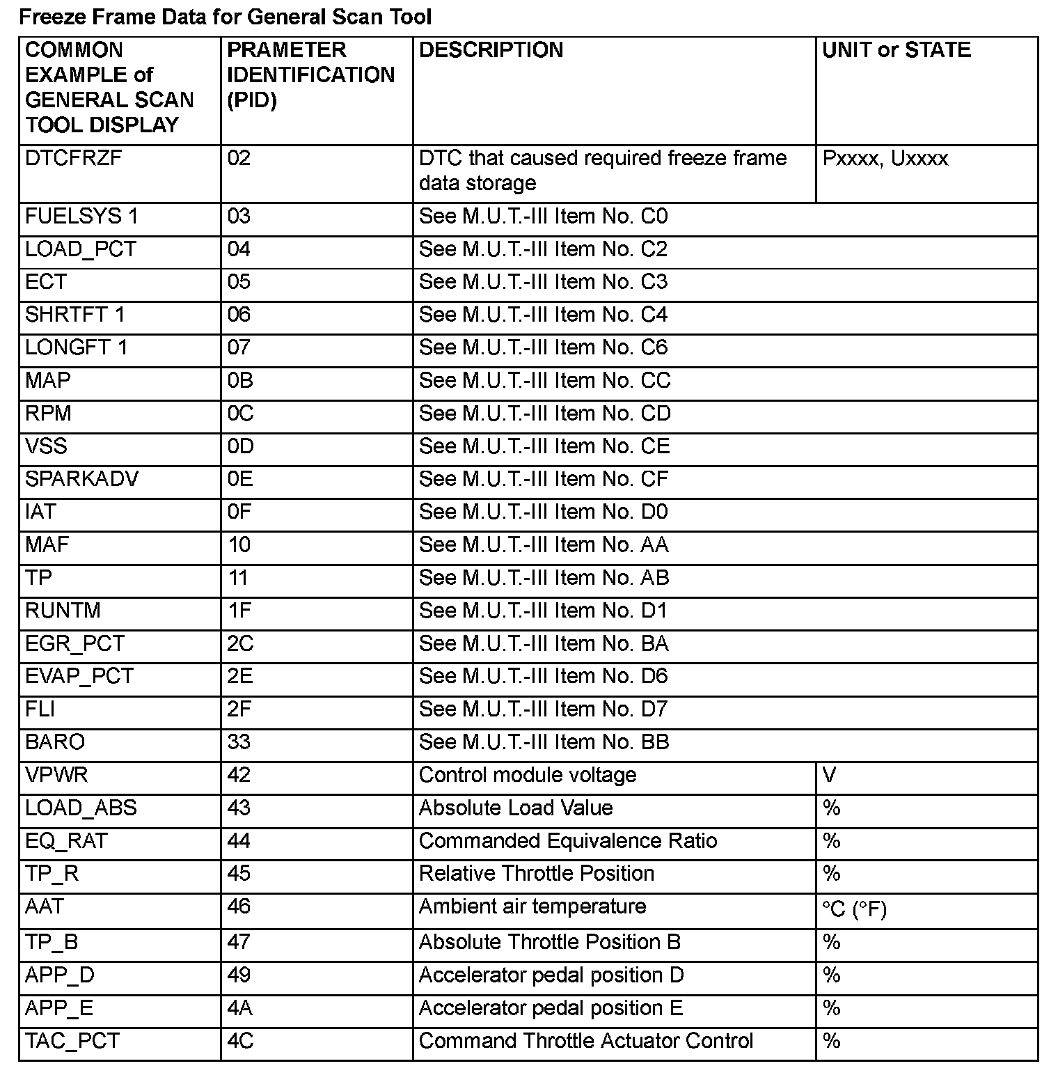 Freeze Frame Data For General Scan Tool