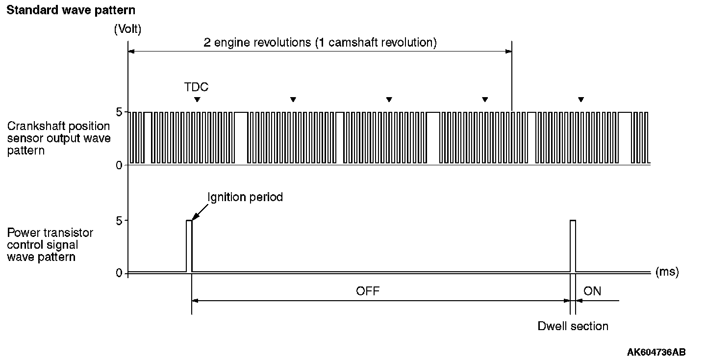 Point: The power transistor control signal (ignition timing) is advanced when the engine speed is increased.