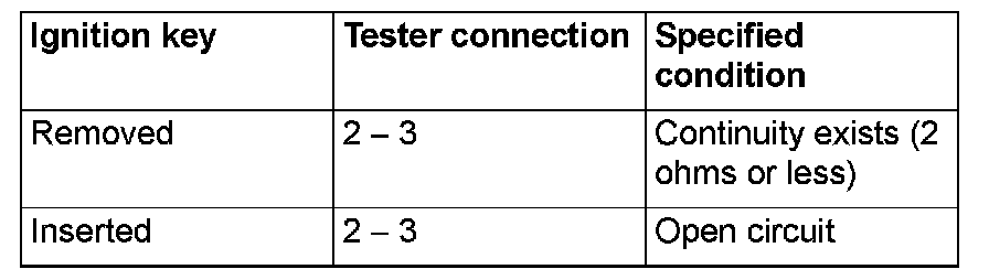 Disconnect key reminder switch connector C-213. Then check continuity between terminals.