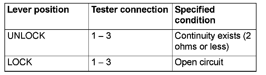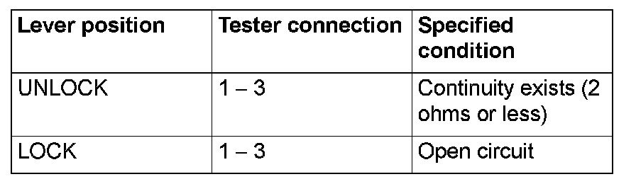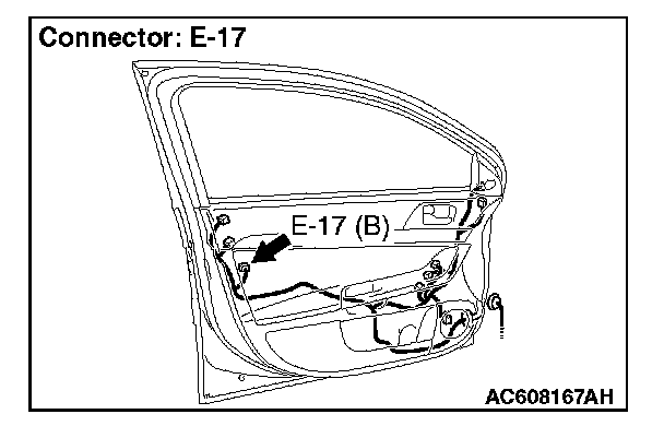 Disconnect front door lock actuator (LH) connector E-17. Then check continuity between the terminals.