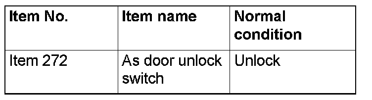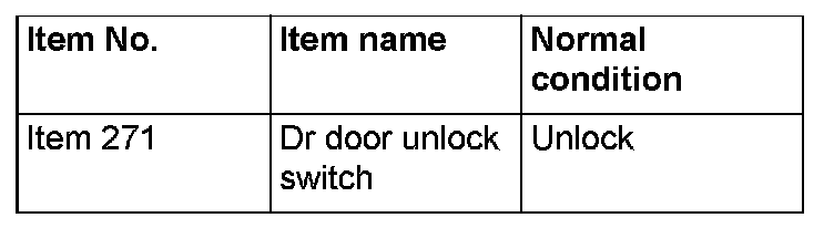 Q: Are normal conditions displayed on the "Dr door unlock switch" and "As door unlock switch"?