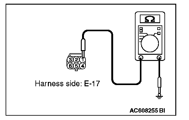 STEP 4. Check the ground circuit to the front door lock actuator (LH). Measure the resistance at front door lock actuator (LH) connector E-17.