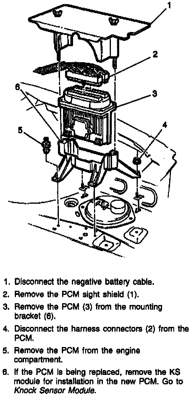 6. If the PCM is being replaced, remove the KS module for installation in the new PCM. Go to Knock Sensor Module.