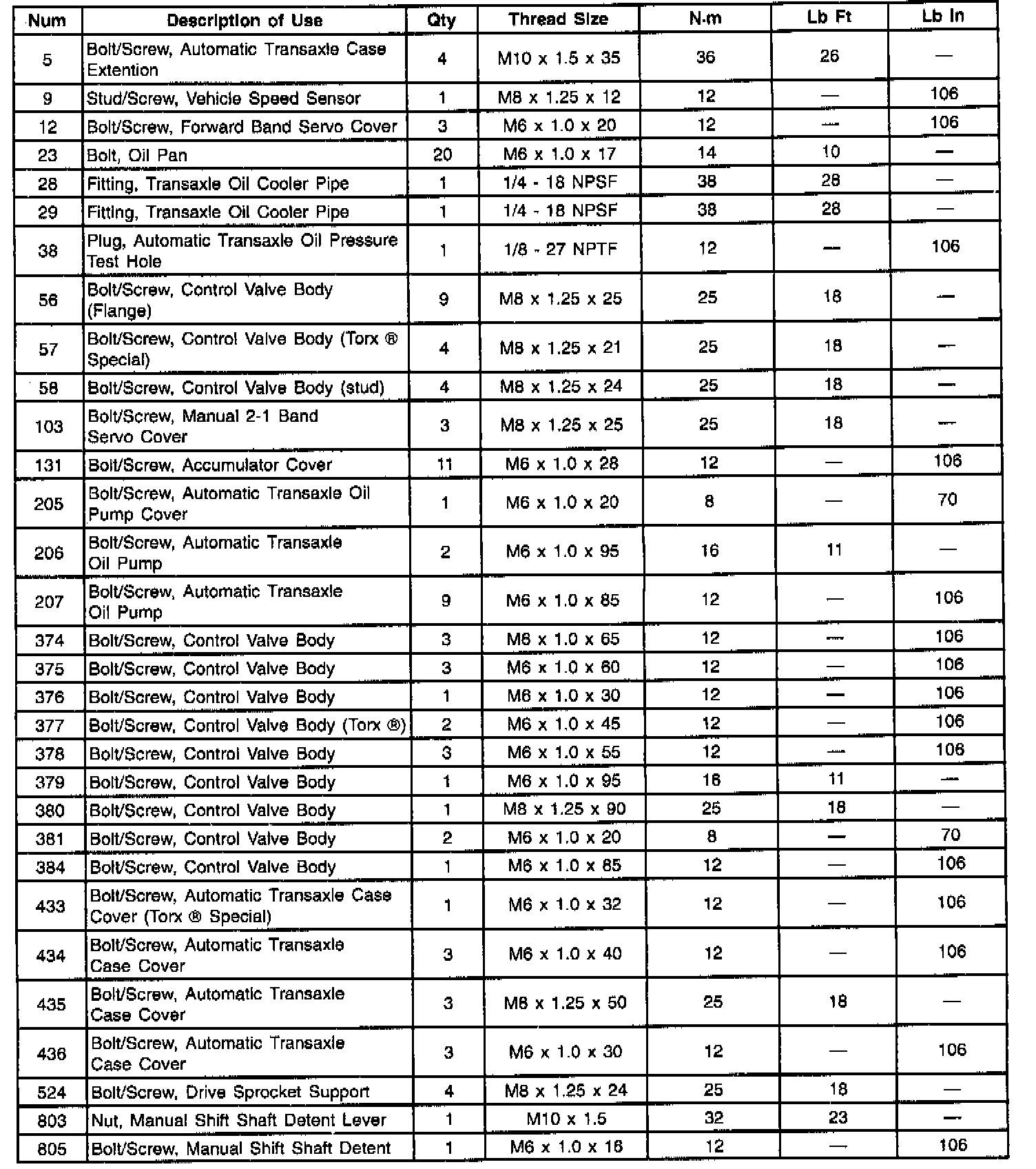 Fastener Tightening Specifications - Unit Repair