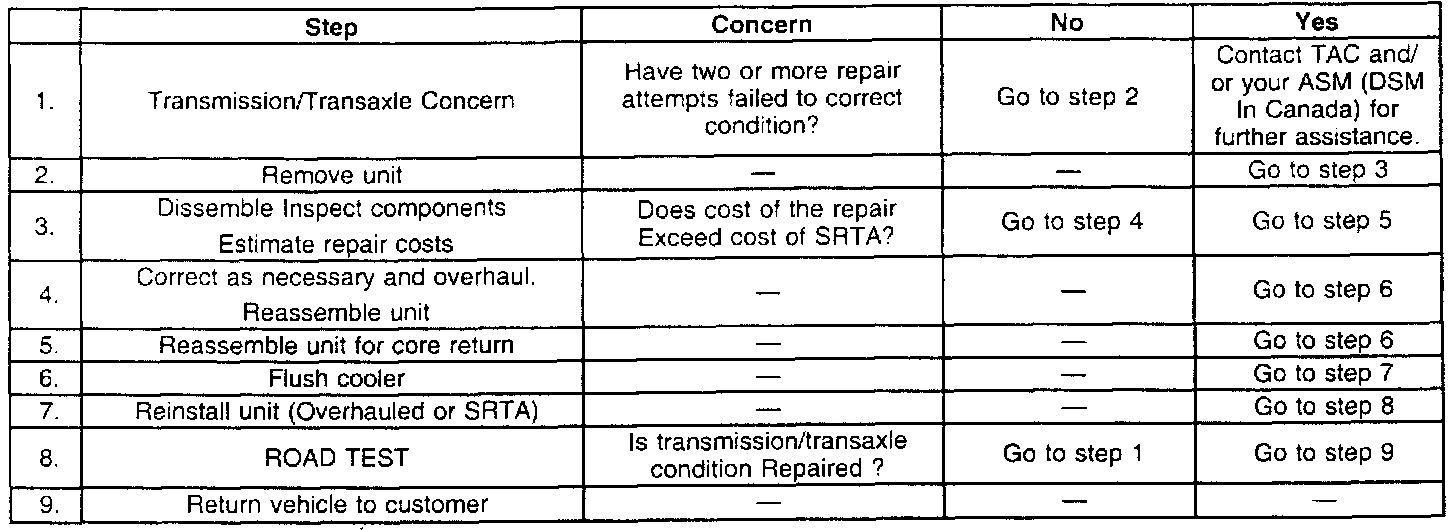 This service procedure allows dealers to repair or replace automatic transmissions based upon the cost of the repair and customer satisfaction. Each repair should be evaluated individually to determine the need for repair or replacement.