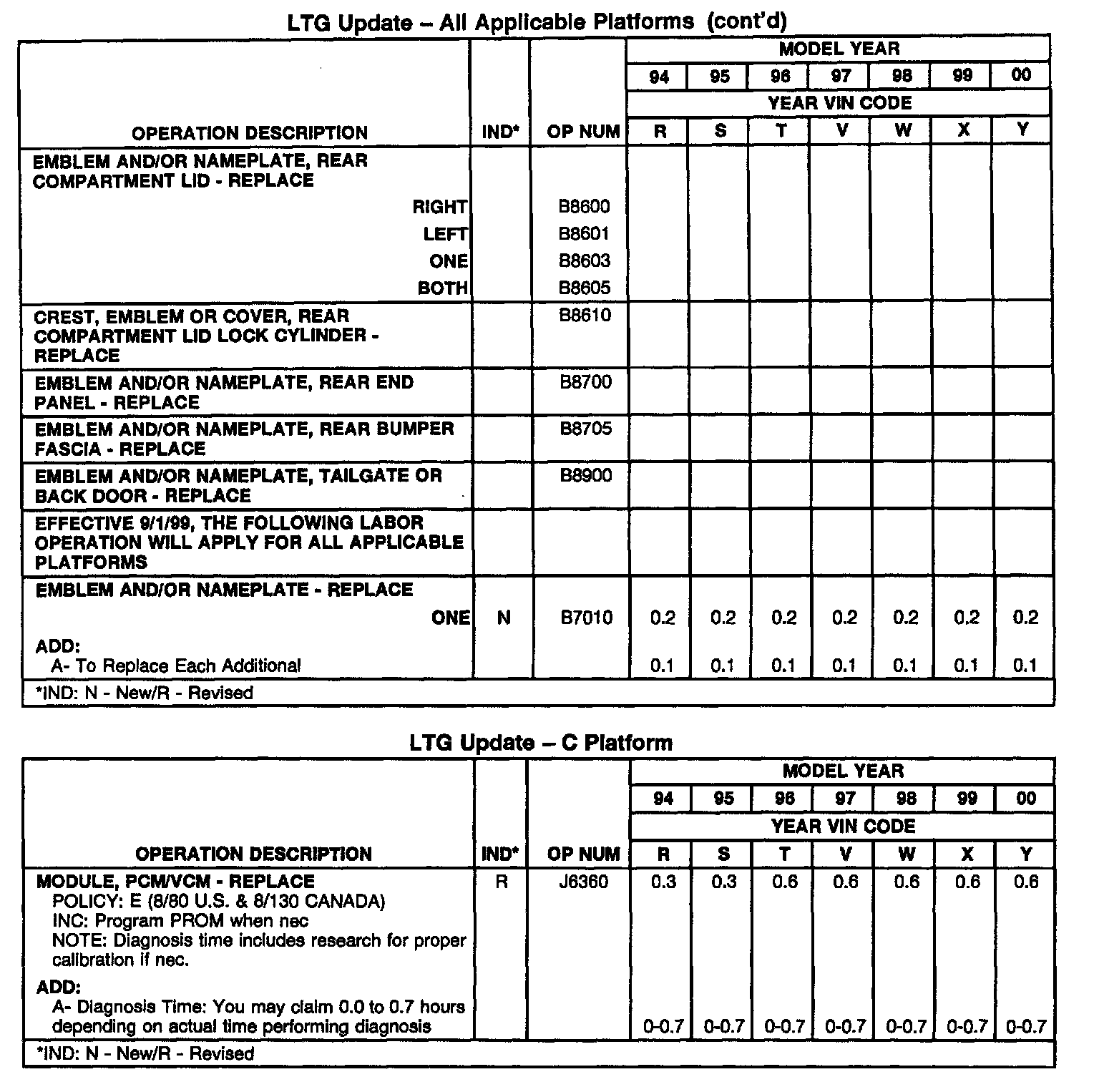 Please retain any changes made to the A, B, D and L Car Labor Time Guides as these vehicles have been discontinued since 1997 and the Labor Time Guides will not be republished. Changes to the P/H Truck Chassis should also be retained. The vehicle was discontinued in December, 1998. Please note: Labor Time Guides for these discontinued vehicles will not be republished.