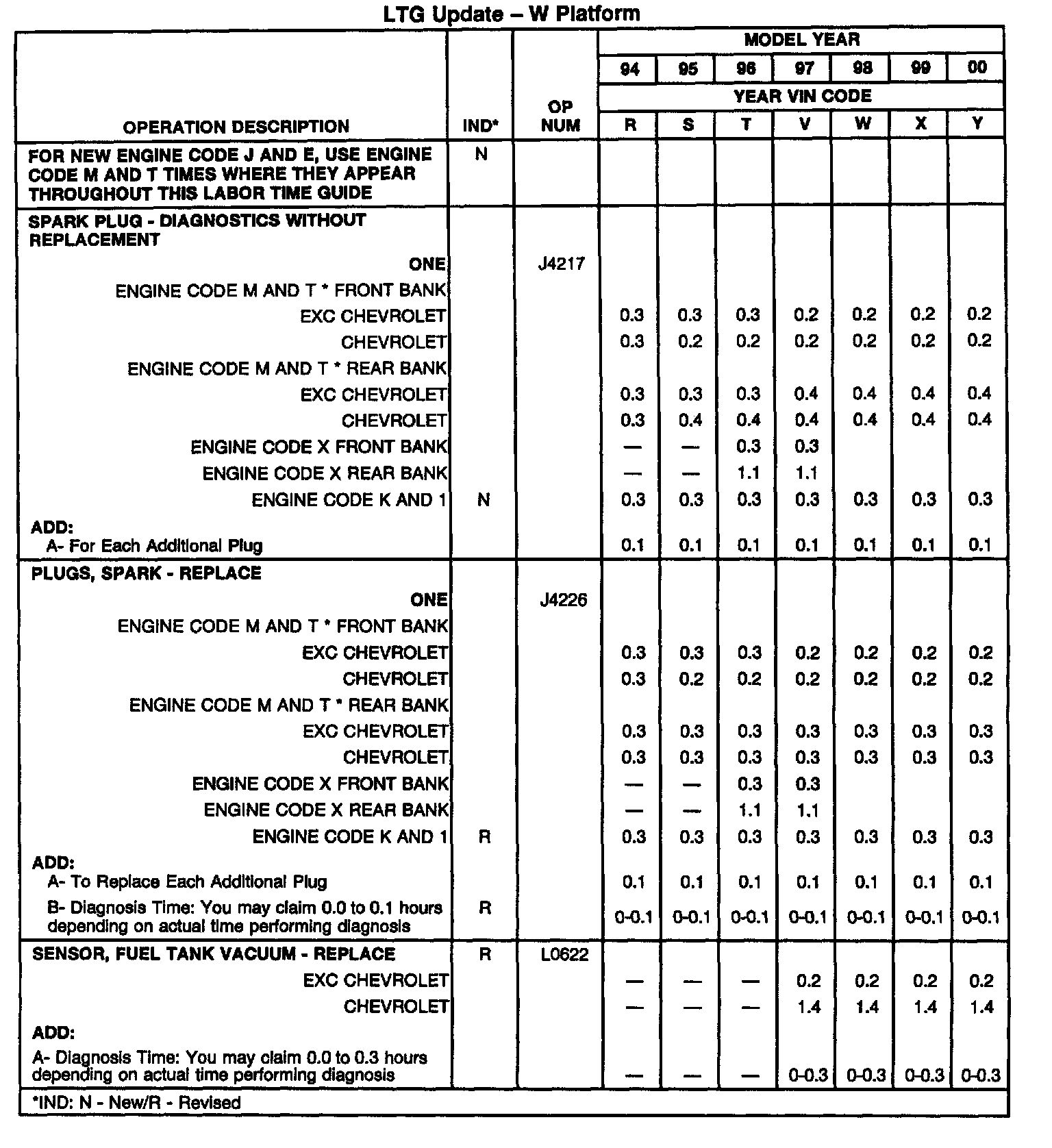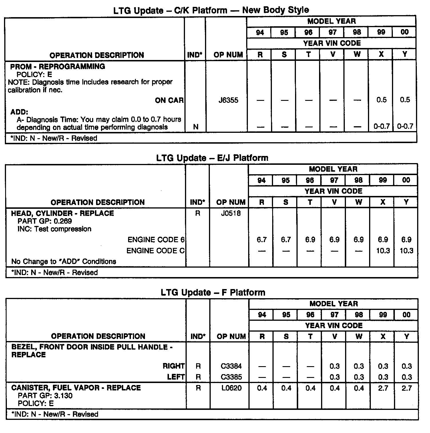 This bulletin addresses changes to the published General Motors Labor Time Guides. These changes (new or revised) are the result of new time studies and/or dealer "Requests For Review" being handled by the GM Service Operations Group. They are effective upon receipt. All changes will appear in the next printing of the Labor Time Guide.