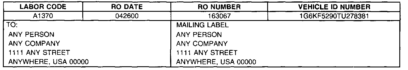 Shown are R.O. Only request which should be returned to the requestor via the post office using the mailing label provided. No R.O. Only request should be returned to the Warranty Parts Center.