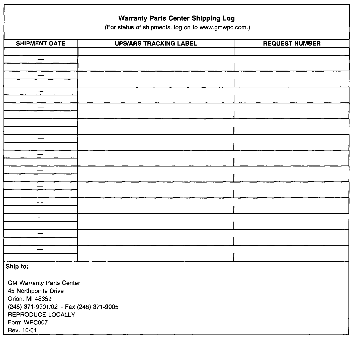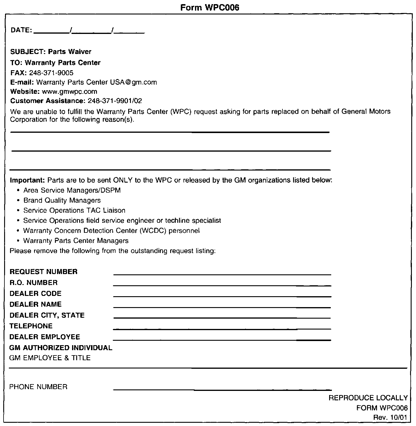 Shown are part requests that have not been received at the Warranty Parts Center as of this date. If your records indicate that you have returned the requested part (allow 7 days for shipping and handling), it is imperative that you follow-up with the WPC at 248/371-9901/9902 (or fax at 248/371-9005) to resolve the issue and avoid possible debit.