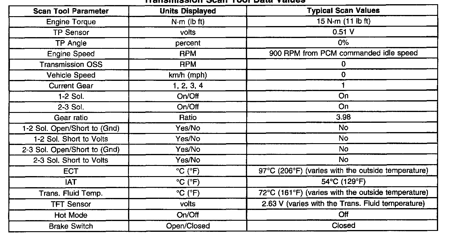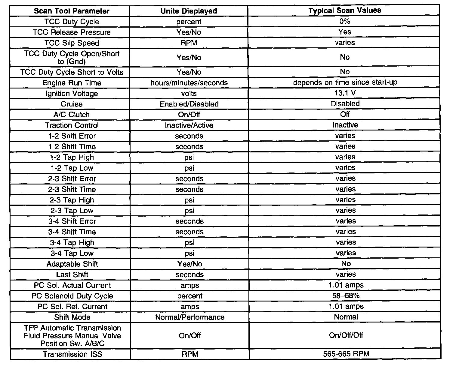 Only the parameters listed below are used in this manual for diagnosing. If a scan tool displays other parameters, the values are not recommended by General Motors for use in diagnosis.