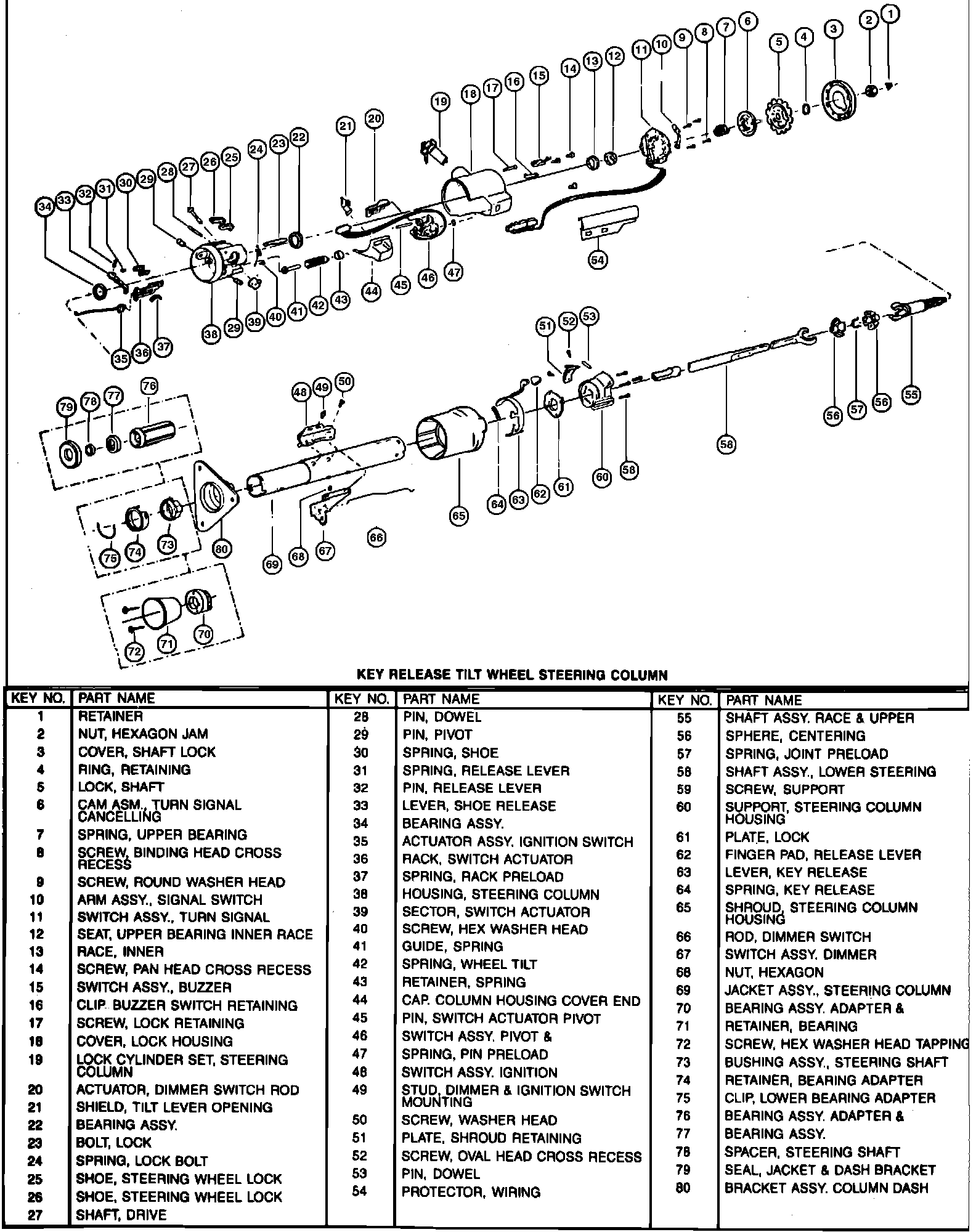 This column incorporates a key release inhibitor which must be depressed for ignition key removal, and has no shift tube or back drive system.