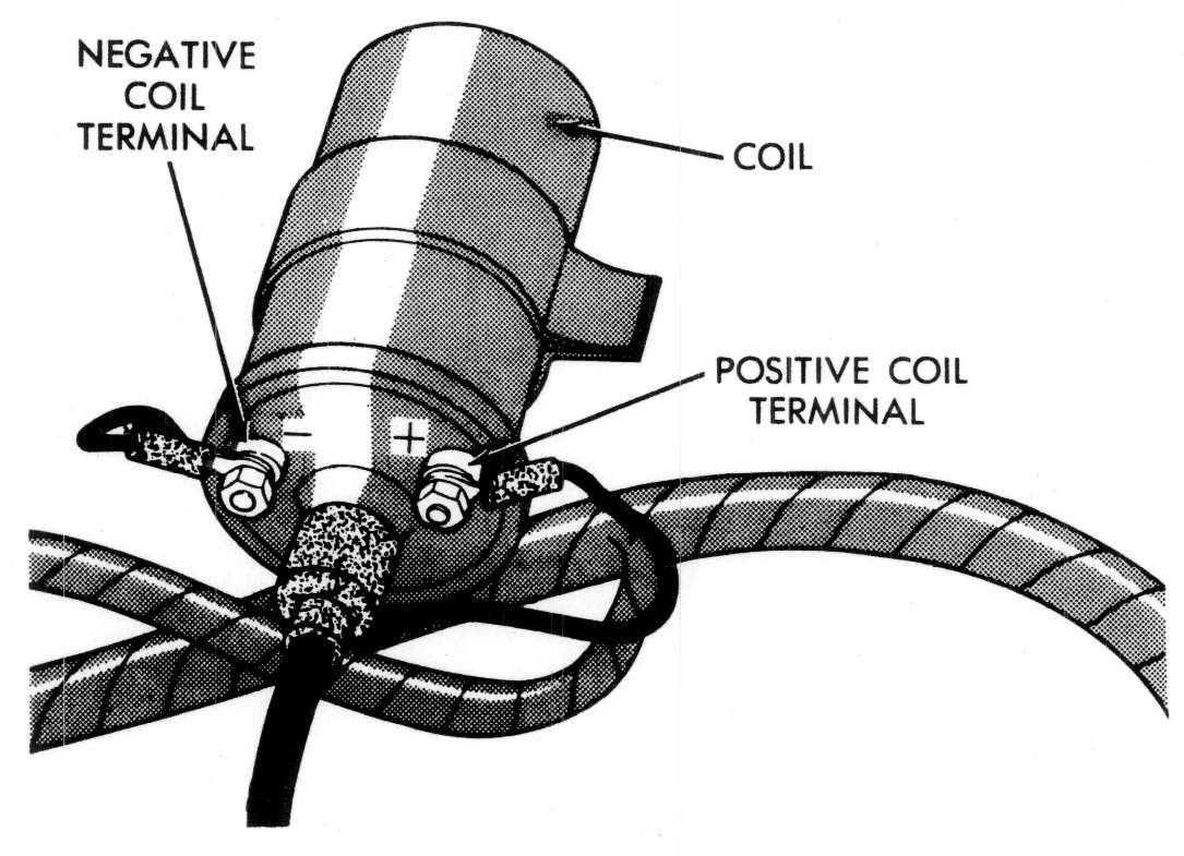 2. Connect the red leak of the test tachometer unit to the negative primary terminal of the coil and the black lead to good ground.