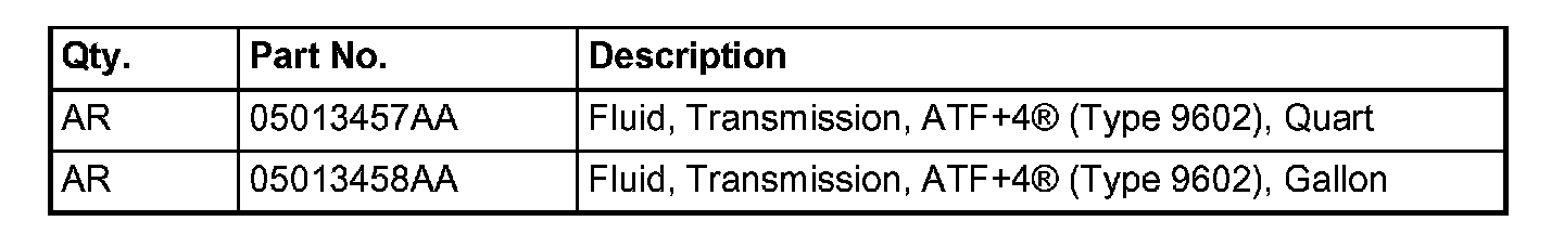 ATF+4(R) - (Type 9602) is being used as factory fill for Chrysler Group automatic transmissions. ATF+4(R) is recommended for all vehicles equipped with Chrysler Group automatic transmissions EXCEPT FOR THOSE NOTED ABOVE.
